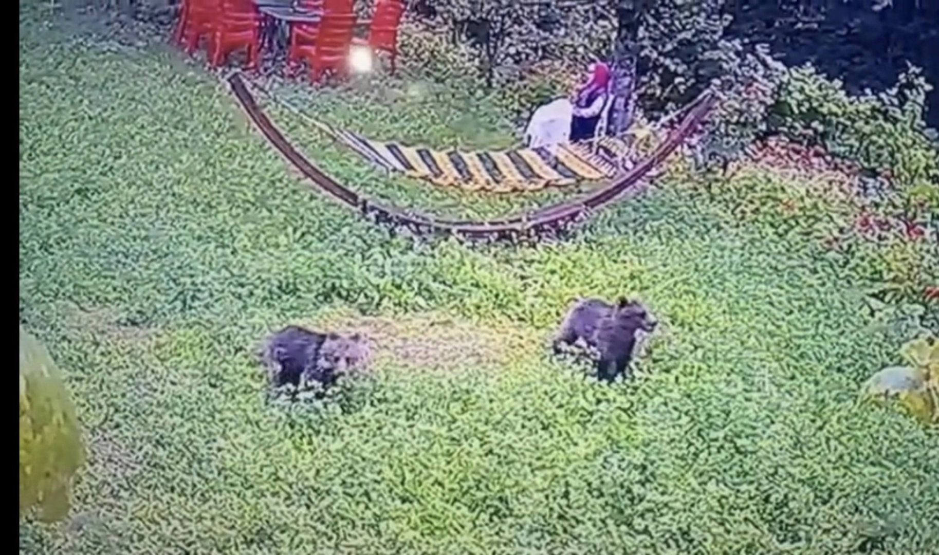 Murat ÖZELCİ/KARABÜK, (DHA)- KARABÜK’te, köyde bir evin bahçesine girip yiyecek arayan 2 yavru bozayı güvenlik kamerasına yansıdı.