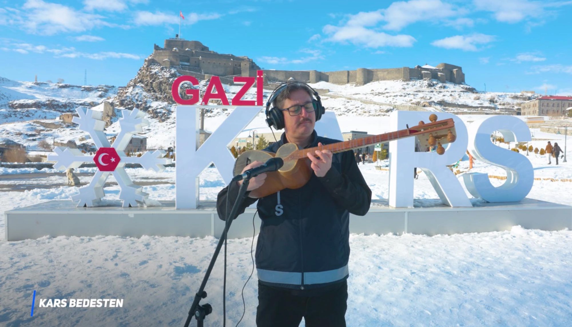 Türk Polis Teşkilatı’nın 181'inci kuruluş yıl dönümü ve Polis Haftası etkinlikleri kapsamında, Kars İl Emniyet Müdürlüğü personeli anlamlı bir projeye imza attı. 'Emniyet İçin Çal, Huzur İçin Söyle' sloganıyla hazırlanan çalışmada polisler, kentin tarihi ve kültürel mekanlarında enstrüman çalıp türkü söyledi.