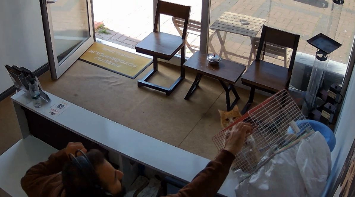 Emre ÖNCEL-Berkay YILDIZ/SAMSUN, (DHA)- SAMSUN’un Atakum ilçesinde fotoğrafçı dükkanındaki kafesteki kuşlara, kedinin saldırdığı anlar kameraya yansıdı. İş yeri sahibi Ali Kalyoncu (34), “Kuşlarımın adı Icardi ve Osimhen. Ne zaman kapıyı açık bıraksam kediler burada pusuya yatıyor. Onlar için de kapının önünde su ve mamamız var. Onlar artık mamayı yemeye değil de kuşlara göz diktiler” dedi.