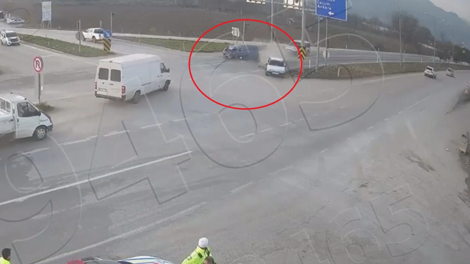 Şerife Serap KARA/AMASYA, (DHA)- AMASYA’da kırmızı ışıkta bekleyen otomobile arkadan hızla gelen bir başka otomobil çarptı. 2 sürücünün yaralandığı kaza anı güvenlik kamerasına yansıdı.