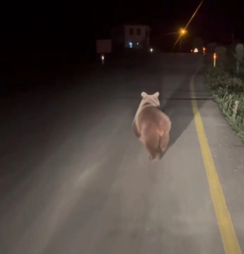 Murat ÖZELCİ/EFLANİ (Karabük), (DHA)- KARABÜK'te köy yolunda koşan bozayı cep telefonu ile görüntülendi.Olay, Eflani ilçesine bağlı Karacapınar köyü yolunda meydana geldi. Otomobiliyle seyir halinde olan bir sürücü, yolda bozayı gördü. Sürücü, cep telefonuyla ayıyı görüntüledi. Bir süre otomobilin önünde koşan ayı, daha sonra gözden kayboldu. (DHA)