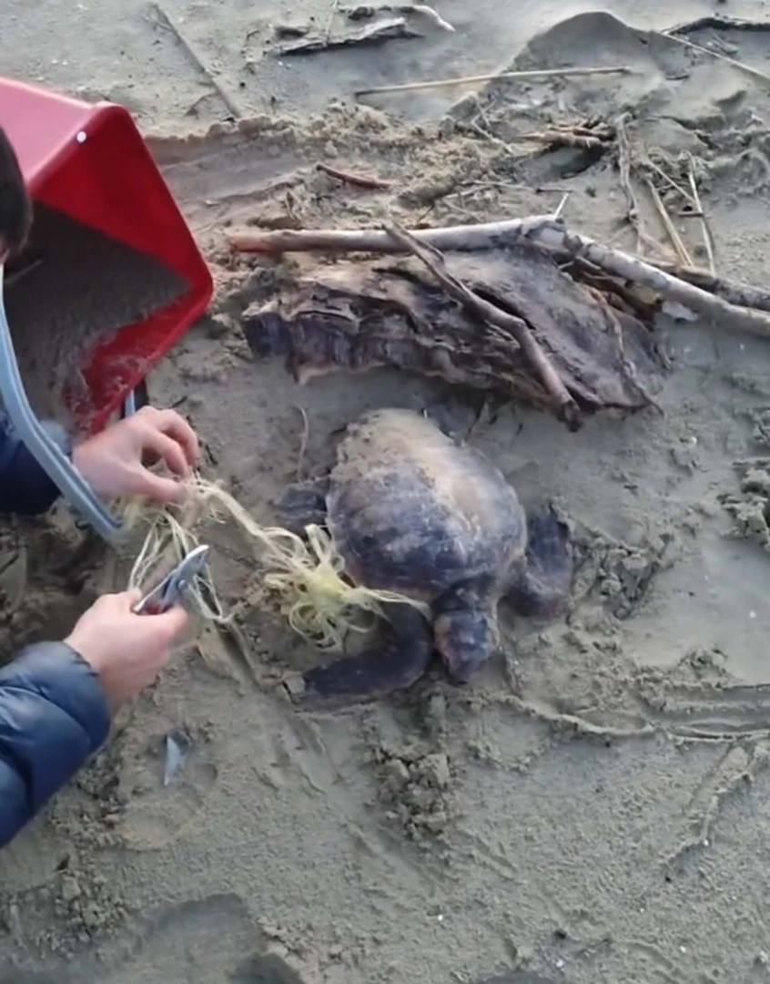 Gökçeada ilçesinde 29 Kasım'da Tolga Kılıç ve arkadaşları sahilde gezdikleri sırada yerde hareketsiz haldeki caretta carettayı fark etti. Kılıç ve arkadaşları yanına gittikleri kaplumbağanın misina ile ipe dolandığını gördü. Grup, caretta carettayı kurtarıp, doğal ortamına geri bıraktı. O anlar ise cep telefonu kamerasıyla kaydedildi. (DHA)