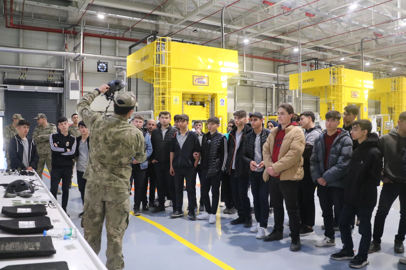 Ali Fuat GÜÇLÜER/AFYONKARAHİSAR, (DHA) - AFYONKARAHİSAR'da 327 üniversite ve lise öğrencisi, Milli Savunma Bakanlığı'na bağlı 8'inci Ana Bakım Fabrika Müdürlüğü'nde askeri teçhizatların üretimini yerinde gördü. 'Öncülerinin İzinde Hayallerinin Peşinde' projesi kapsamında düzenlenen gezide öğrencilere, Askeri Fabrika ve Tersane İşletme Anonim Şirketi'nin (ASFAT) çalışmaları anlatıldı. Milli Savunma Bakanlığı'nın; askeri fabrika ve tersaneler aracılığıyla neleri ürettiğini gençlere göstermek, onların hayallerini paylaşmak amacıyla bakanlığa bağlı ASFAT tarafından 'Öncülerinin İzinde Hayallerinin Peşinde' başlığıyla düzenlenen 'Savunma Sanayi Farkındalık Buluşmaları' sürüyor. 14-16 Nisan tarihlerinde farklı illerdeki askeri fabrika ve tersanelerde gerçekleştirilen program, Afyonkarahisar'da 8'inci Ana Bakım Fabrika Müdürlüğü'nde de yapıldı. Program kapsamında 327 öğrenci, öğretmen ve yöneticilere; fabrikadaki üretim, bakım ve onarım faaliyetleri anlatıldı, ASFAT şirketi hakkında sunum yapıldı.ATEŞ EDİLEN ZIRHI İNCELEDİLERFabrika Müdürü ve Mühendis Albay Tayfun Emirzeoğlu tarafından yapılan sunum sonrasında yemek yiyen öğrenciler, yeni üretilen askeri başlık, askeri yelekler, zırh ve bot üretim bölümlerini tek tek inceledi. Fabrikayı gezen öğrenciler, ürünleri yerinde görme fırsatı yakaladı. Fabrikada yer alan üretim kısmındaki 7 bin tonluk pres makinesinde, helikopter tabanlığı üretimi de gerçekleşiyor. Zırh üretim bölümünde bir zırha ateş edilerek, öğrencilere zırhın hazır olduğu gösterildi. Özel bölüm dışında bekleyen öğrenciler, ateş edilen zırhı daha sonra inceleme fırsatı buldu. 'EN ÇOK DİKKATİMİ ÇEKEN ŞEY; ÇELİK YELEKLER'9'uncu sınıf öğrencisi Yusuf Ateş, "Fabrikada en çok dikkatimi çeken askeri teçhizatlar. İlk önce miğfer, sonra bot geliyor. Çünkü hem oluşumu hem de ayrı ayrı farklı renkler olduğu için dikkatimi çekti" dedi. 11'inci sınıf öğrencisi Mehmet Yabuz, "En çok dikkatimi balistik kalkan zırhlar, belli başlı savunma sanayisinde kullanılan ürünler çekti. Onun dışında mühimmatlar, bu tür şeyler dikkatimi çekti" diye konuştu. 11'inci sınıf elektrik elektronik öğrencisi Veysel Şahin, "Burada askerlerimizin kullandığı teçhizat malzemelerini gördüm. Kask olsun, çelik yelek, botlar olsun. En çok dikkatimi çeken şey; çelik yelekler, seviyesine göre üretilen malzemeler, hangi malzemeden olduğu, hangi makinelerde üretildiği bunlar dikkatimi çekti" dedi. Program sonunda öğrencilere katılım sertifikaları, Fabrika Müdürü ve Mühendis Albay Tayfun Emirzeoğlu tarafından verildi. (DHA) FOTOĞRAFLI