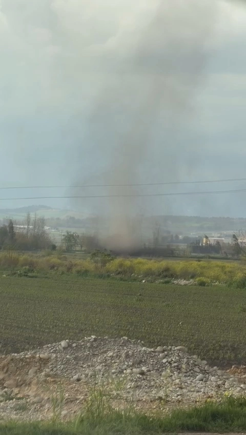 Osmaniye'nin Kadirli ilçesinde sağanak öncesi hortum çıktı. Yağış başlamadan Adana kara yolu Soysallı mevkisinde meydana gelen hortum, bir vatandaş tarafından cep telefonu kamerasıyla kayda alındı. Boş arazide çıkan hortum, herhangi bir zarara yol açmadı. (DHA)