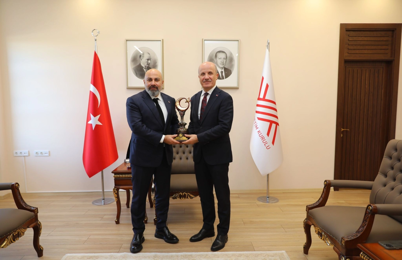 İSTANBUL, (DHA)- RAUF Denktaş Üniversitesi (RDÜ) Mütevelli Heyet Başkanı Barış Çakmakçı ve beraberindeki üniversite heyeti, Yükseköğretim Kurulu (YÖK) Başkanı Prof. Dr. Erol Özvar’ı makamında ziyaret etti.