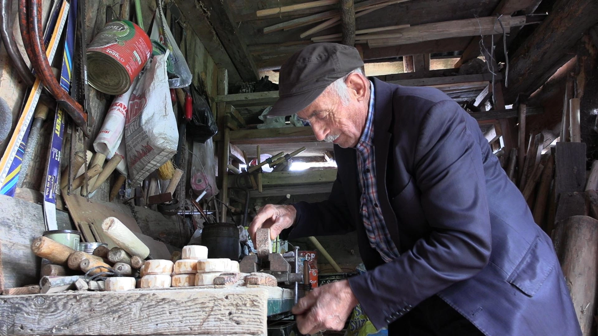 Mutlu YUCA-Oğuzhan EKE/MENGEN (Bolu), (DHA)- BOLU'nun Mengen ilçesinde yaşayan İrfan Sağlam (70), marangoz atölyesine çevirdiği samanlıkta tarım aletlerinin minyatürünü yapıyor. Emekli olduktan sonra memleketi Mengen'e dönen ve burada tek yaşayan İrfan Sağlam, çocukken özendiği marangoz işlerine merak saldı. Çocukken marangoz komşusunu izleyerek büyüyen Sağlam, bahçesindeki samanlığı marangoz atölyesine çevirdi. Sağlam, burada babası ve dedesinin kullandığı tarım aletlerinin minyatürlerini yapmaya başladı. Tahtadan yapılan minyatürler ilçedeki festivallerde de sergilenirken, İrfan Sağlam, "Bunlar, 1938'den dedelerimizin babalarımızın kullandığı tarım araçları. O zamanlar traktör yok, öküzle karasabanla tarım işleri yapılıyordu. Tarlalar bu araçlarla sürülüyordu. Bu yaptığım minyatür tarım araçlarını festivale götürüyorum. Hem sergiliyorum hem alan olursa satıyorum. Önümüzdeki günlerde Halk Eğitim Merkezi ile giyim şenliğinde sergilenecek" dedi. (DHA)
