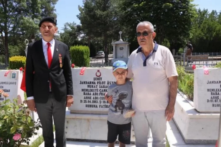 Ali Fuat GÜÇLÜER/AFYONKARAHİSAR, (DHA)- TOKAT'ta, 2010'da düşen helikopterde şehit olan Jandarma Pilot Üsteğmen Murat Saraç'ın babası Fuat Saraç (68), Kurban Bayramı öncesi oğlunun kabrini ziyaret etti. Şehit babası Saraç, "Boynuma sarılıp da 'babam' demesini, şu anda o kadar özlüyorum ki keşke olsa da bunu söylese" dedi. Afyonkarahisar'da, Kurban Bayramı arifesinde şehit aileleri, şehitlerinin kabirlerini ziyaret etti. 10 Haziran 2010'da Giresun'dan Ankara'ya giderken Tokat'ta düşen Jandarma Genel Komutanlığı'na ait 'Skorsky' tipi helikopterde şehit olan Jandarma Pilot Üsteğmen Murat Saraç'ın babası Fuat Saraç, oğlunun adını verdiği torunu Murat Saraç (8) ile şehitliğe ziyarete geldi. Şehit oğlunun kabri başında dualar eden Fuat Saraç, ayrıca Türkiye Harp Malulü Gaziler, Şehit, Dul ve Yetimleri Derneği Afyonkarahisar Şube Başkanı İsmail Kumartaşlı ile birlikte diğer şehitlerin mezarlarına da çiçek bıraktı. Fuat Saraç, "Şehit olması oğlumuzun bir anlamda gurur verici, bir anlamda da böyle özel günlerde oldukça, bizim açımızdan sıkıntılı geçen bir gün oluyor. Bu sene bizim 13'üncü yılımız. Her yılımız bu şekilde üzüntülü, sıkıntılı, 'keşke olsaydı' diyoruz. Benim her zaman da söylediğim gibi, onun boynuma sarılıp bir müddet bekleyip de 'babam' demesini şu anda o kadar özlüyorum ki, keşke olsa da bunu söylese. O hasretle her zaman içimizde yaşıyoruz. Malum Kurban Bayramı. Kurban Bayramı nedeniyle zaten benim hep yaptığım, arife günü, bayram sabahı daha kimseyle bayramlaşmadan ilk işim kabre gelip oğlumla bayramlaşıp daha sonra normal bayramlaşmaya geçiyorum. Tabii ki benim açımdan birtakım sıkıntılarla beraber bayramı bu şekilde yaşamaya çalışıyoruz" dedi. Yeğeni Murat Saraç ise kendisine, dedesiyle babasının adını verdikleri amcasıyla bayramlaşmaya geldiğini anlattı. ŞEHİT AİLELERİNE KÜÇÜK NOTLU ÇİÇEKLER BIRAKIYORLAR Türkiye Harp Malulü Gaziler, Şehit, Dul ve Yetimleri Derneği Afyonkarahisar Şube Başkanı İsmail Kumartaşlı da yaklaşık 10 yıldır hem kandil günlerinde hem de bayramlardan önce şehit aileleri görmeden, şehit kabirlerine gelip üzerinde, 'Anneciğim, babacığım bayramınızı kutlar, ellerinizden öperim' yazılı çiçekler bıraktıklarını anlattı. Kumartaşlı, "Ertesi gün bayram sabahı, ailelerimiz mezarlarına gelip de şehitlerini ziyaret etmeye geldikleri zaman hoş bir duygusal notla karşılaşmış oluyor. Yaklaşık 10 yıldır tüm ailelerimiz bu notları almaya artık alıştılar" dedi. (DHA)