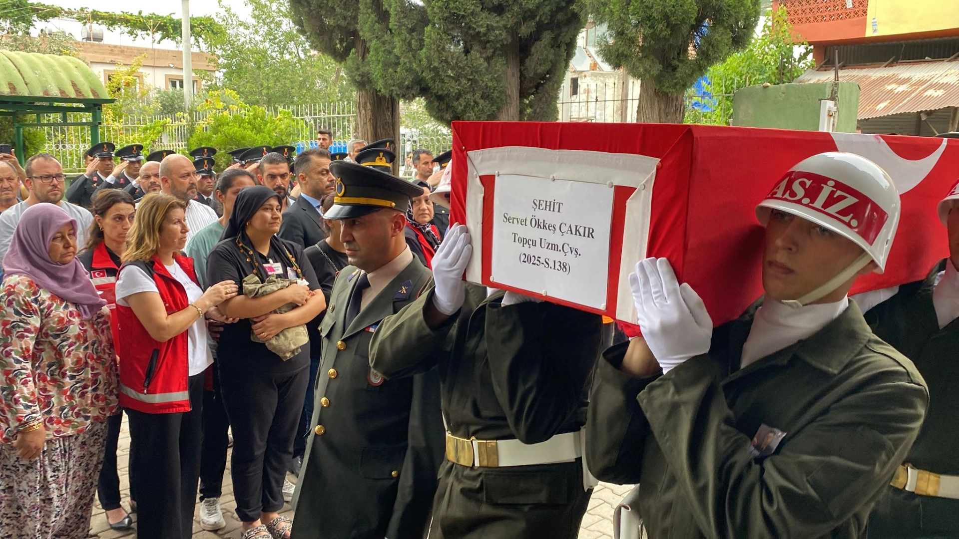 İbrahim EMÜL/ OSMANİYE, (DHA)- EDİRNE'de askeri araç kazasında şehit olan Topçu Uzman Çavuş Servet Ökkeş Çakır (25), memleketi Osmaniye'de toprağa verildi. Şehidin 1 yıl önce evlendiği eşi Pınar Çakır (24), taşıdığı eşinin üniformasına sarılıp ağladı.Edirne'de 102'nci Topçu Alay Komutanlığı'nda görevli Topçu Uzman Çavuş Servet Ökkeş Çakır, dün araç kazasında yaralandı. Ambulansla hastaneye kaldırılan Çakır, doktorların tüm müdahalesine rağmen kurtarılamadı. Şehidin cenazesi, askeri törenin ardından memleketi Osmaniye'ye getirildi. Hastane morgundan alınan şehidin Türk bayrağına sarılı tabutu, ilk olarak helallik alınması için merkez Haraz Mahallesi’ndeki baba ocağına götürüldü. Şehidin yakınları gözyaşlarına boğuldu. Şehit Topçu Uzman Çavuş Servet Ökkeş Çakır'ın 3 yıl önce annesi Melek Çakır’ı, çocuk yaşta ise babası Ökkeş Çakır’ı kaybettiği, 6 kardeşin de en küçüğü olduğu belirtildi.Şehidin cenazesine; ailesi, Osmaniye Valisi Erdinç Yılmaz, protokol üyeleri, askeri yetkililer, yakınları ve çok sayıda kişi katıldı. Servet Ökkeş Çakır'ın yaklaşık 1 yıl önce evlendiği Pınar Çakır, eşinin üniformasına sarılıp gözyaşı döktü.Şehit Servet Ökkeş Çakır için Yeşil Cami'de ikindi vakti cenaze namazı kılındı. İl Müftüsü Ali Çakmak'ın kıldırdığı namazın ardından, dualarla Karaçay Mezarlığı’na götürülen şehit Çakır, annesi Melek Çakır’ın mezarının yanında toprağa verildi. (DHA)