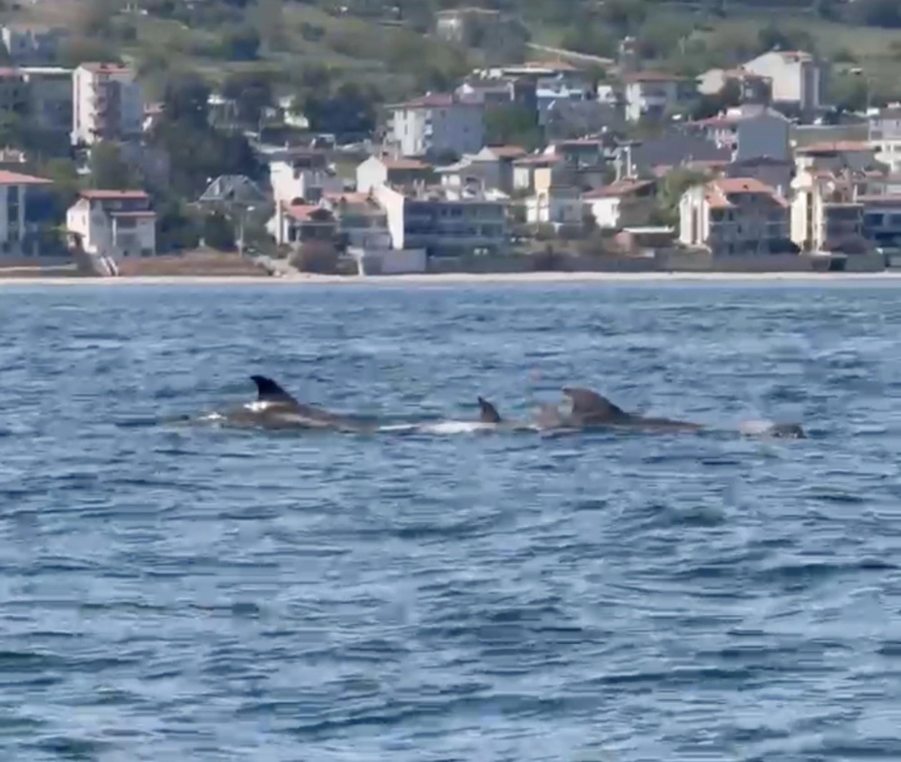 Abdullah YALÇIN/TEKİRDAĞ, (DHA)- MARMARA Denizi'nin Tekirdağ açıklarında yüzen yunuslar, cep telefonu ile görüntülendi.Tekirdağ'ın Süleymanpaşa ilçesi Barbaros Mahallesi açıklarında yüzen yunuslar cep telefonu ile görüntülendi. Tekneyle denize açılan Fikret Topaloğlu, yunusları cep telefonu ile görüntüledi. Açıklarda bir süre yüzen yunuslar daha sonra gözden kayboldu. (DHA)
