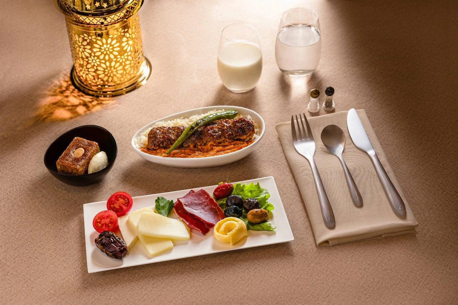 Uçuş süresi ve kabin sınıfına göre planlanan ikramlar, Ramazan ayının ruhunu yansıtan seçkin sunumlarla Türk mutfağının köklü lezzet geleneğini yansıtacak. Türk mutfağının zengin lezzet mirasından ilham alınarak hazırlanan ikramlarla yolcular Ramazan ayının atmosferini yaşayacak. Menüde ayrıca Güllaç, ekmek kadayıfı ve fıstıklı kadayıf gibi Ramazan sofralarının vazgeçilmez tatlıları, binlerce metre yüksekte misafirlere sunulacak.