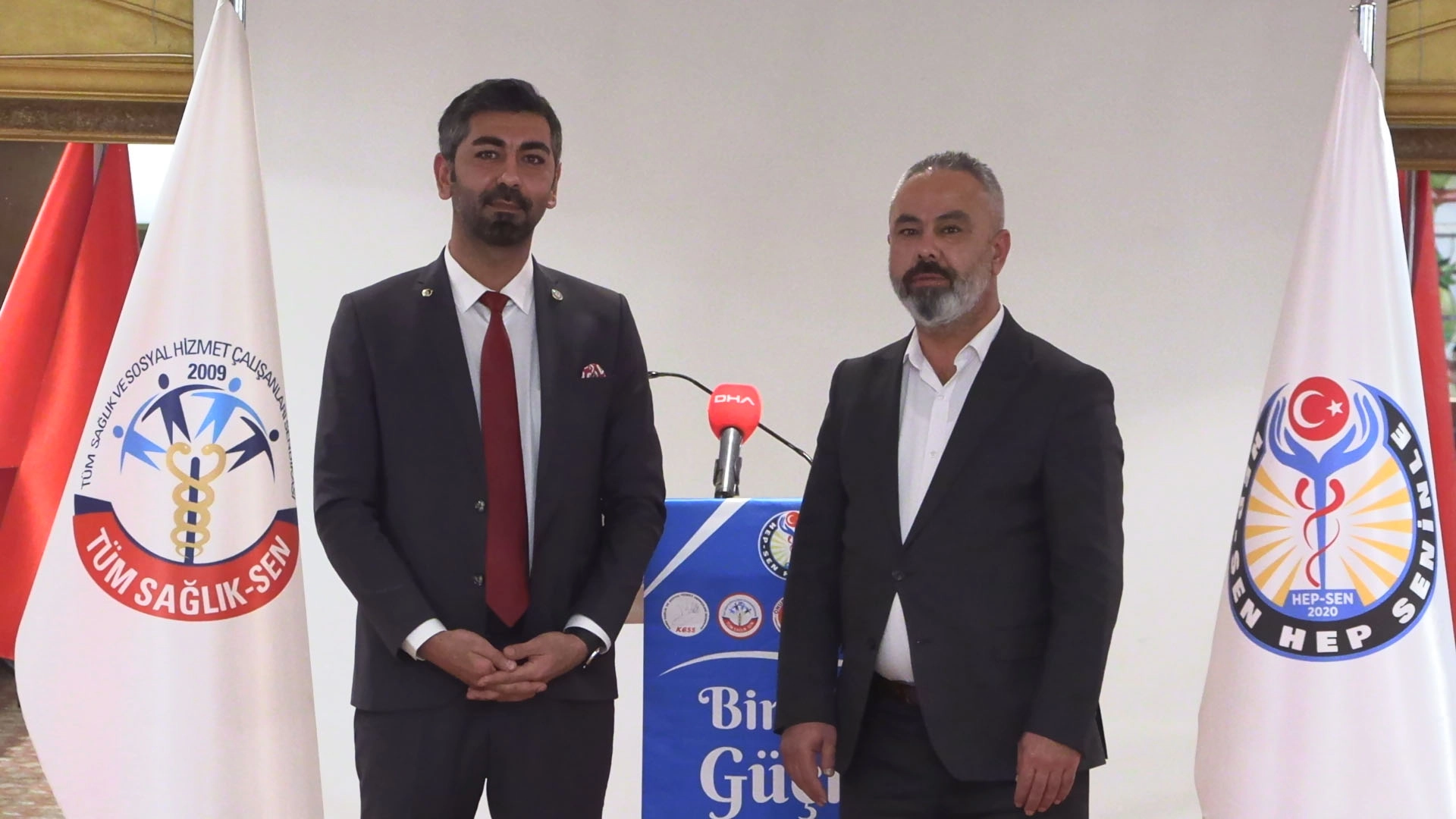 ANKARA, (DHA)- HEP-Sendikası (Hep-Sen) ile Tüm Sağlık ve Sosyal Hizmet Çalışanları Sendikası (Tüm Sağlık-Sen) birleşme kararı aldı. Bu kapsamda .Ankara’da bir otelde gerçekleşen toplantıya, Hep-Sen, Tüm Sağlık-Sen, Sağlık Çalışanları Sendikası, Kamu Sağlık ve Sosyal Emekçileri Sendikası, Onur Sağlık Sendikası ile Sağlık ve Sosyal Hizmetleri Sendikası’nın genel başkanları ile sendika üyeleri katıldı. ‘BU BİRLEŞMENİN HAYIRLARA VESİLE OLMASINI DİLİYORUM’Hep-Sen genel Başkanı Yunus Şimşek, toplantıda yaptığı açıklamada, “Hep-Sen, 9 Kasım 2020’de 7 hemşire ile kuruldu, binler, on binler oldu çok yakında yüzbinler olacağız. Kurulduğumuz günden bugüne hiçbir partinin, vakfın, grubun desteğini almadan Cumhuriyetin temel mirasıyla beraber inisiyatif aldık. Sağlık Çalışanları Sendikası, Kamu Sağlık ve Sosyal Emekçileri Sendikası, Onur Sağlık Sendikası ile Sağlık ve Sosyal Hizmetleri Sendikası sendikamıza daha önceden katıldı. Biz gerek sağlık emekçileri için gerekse Türkiye Cumhuriyeti'nin vatandaşları için bugün bir inisiyatif daha aldık. Bugün de Hep-Sen ile Tüm Sağlık Sendikası birleşme kararı almıştır. Bu birleşme sadece ülkemizdeki sağlık çalışanları, vatandaşlarımız için değil tıpkı Dünya Sağlık Örgütü'nün açıkladığı gibi tüm insanlığın tam bir iyilik halinde olması için gerek ülke içerisinde gerekse ülke dışında da Hep-Sen, üzerine düşen tüm sorumluluğu yerine getirecek güçtedir. Bu birleşmenin tüm sağlık camiasına, vatandaşlarımıza ve uluslararası arenada da tüm insanlığa hayırlı olmasını diliyorum” dedi.‘ÜYE SAYIMIZI YÜZBİNLERE ULAŞTIRACAĞIZ’Tüm Sağlık-Sen Genel Başkanı Dr. Okay Erözgün ise “Sendika olarak mücadelemizin, sağlık ve sosyal hizmet çalışanlarının özlük ve sosyal haklarının mücadelesinde Hep-Sen ile birlikte olmak için yola çıktık. Bundan sonra mücadelemizi inşallah Hep-Sen ile devam ettireceğiz. Var olan sendikalarımıza sesleniyorum. Hep-Sen çatısı altında birleşmeye kendilerini davet ediyorum. İnşallah bundan sonra sağlım çalışanlarının hakları için Hep-Sen daha ileri gidecektir. Sayın Başkanımın dediği gibi bugün on binlerde yarın hep birlikte yüzbinlere kadar üye sayımızı ulaştıracağız. Bu birleşmenin bütün sağlık camiasına hayırlar hayırlara vesile olmasını temenni ediyorum” diye konuştu. (DHA)