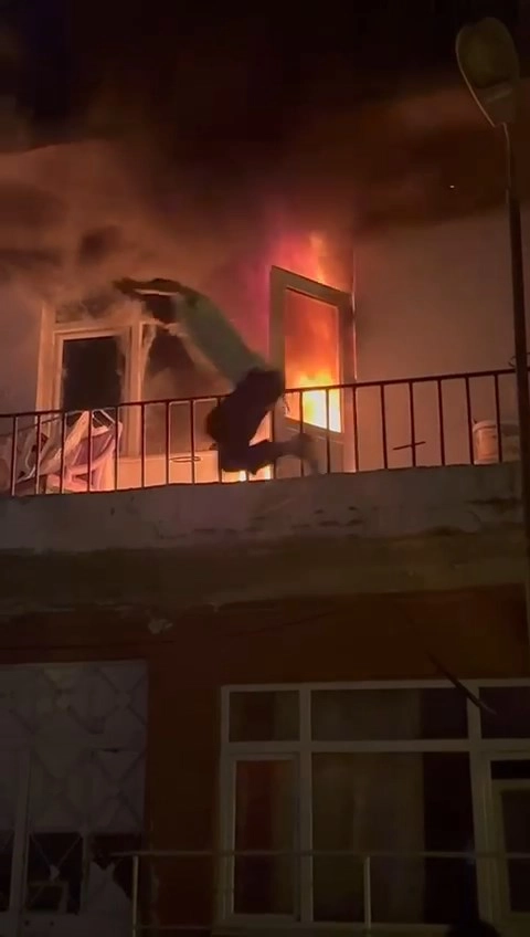 Ardacan UZUN-Nazım Özgün ERBULAN/İZMİT (Kocaeli), (DHA)- KOCAELİ'nin İzmit ilçesinde 5 katlı binanın 1'inci katındaki daire çıkan yangında kullanılamaz hale geldi. Daireye, yangını söndürmek için giren komşunun, alevler büyüyünce balkondan atladığı anlar cep telefonuyla görüntülendi. Kozluk Mahallesi Aynalıkavak Sokak'taki 5 katlı binanın 1’inci katında, Ozan Uzman'ın yaşadığı dairede, dün gece, henüz belirlenemeyen nedenle yangın çıktı. Mahallelinin ihbarıyla adrese itfaiye, sağlık ve polis ekipleri sevk edildi. Ozan Uzman'ın evinin karşı binasında yaşayan ve ismi öğrenilemeyen komşusu, alevleri söndürmek için daireye girdi. Alevlerin büyümesi üzerine Ozan Uzman evden çıkarken, komşusu ise 1'inci kattaki dairenin balkonundan atladı. İtfaiye ekiplerinin müdahalesiyle yangın söndürüldü. Yangında daire kullanılamaz hale geldi.'HER ŞEYİMİZ KÜL OLDU'Ozan Uzman'ın babası Sevinç Uzman, "Evde tek oğlum vardı o da uyuyordu. Uyuduğu için yangının nasıl çıktığını bilmiyor. Bize telefon şarjından kaynaklandığını söylüyor ama yangın çıkınca uyuduğu için hiçbir şey fark etmedi. Fark etmeyince de her tarafı duman kapladı. Dumanın isine ve kokusuna uyandı koltuğun yarısı yanmak üzereymiş. O da panikle birkaç kova su atmış ama söndürememiş, attıkça parlamış. Baktı ki söndürülecek gibi değil bu sefer dışarı çıktı. İtfaiyeyi bekledik, itfaiye gelince zaten içeride olanlar oldu. Her şeyimiz kül oldu. Şu anda yapacak hiçbir şeyimiz yok. Çocukların eşyaları ve kıyafetleri yandı. Oğlum depresyona girdi, hiç doğru düzgün de konuşamıyor. Belediyelerimiz ve valimizden yardım bekliyoruz zor durumdayız" dedi.Karşı binadaki komşusunun yangını söndürmek için daireye girdiğini söyleyen Sevinç Uzman, "O da bizim mahalle komşumuz, genç bir çocuk. Yangını görünce söndürmek için balkona çıkıyor. ‘Yok mu kova su atalım’ diyor. Kovayla da olacak bir iş değildi, zaten alevler büyümüştü. Ona da bir zarar gelmesin diye aşağıya indirdik, atlayan çocuk oydu. Çocukta herhangi bir problem de yoktu" ifadelerini kullandı. (DHA)