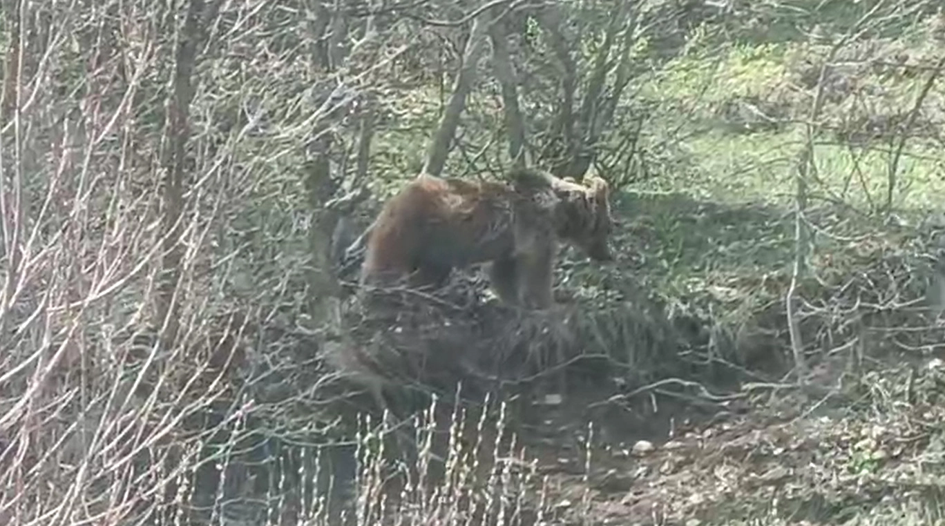 Fatih YILMAZ/TOKAT, (DHA)-TOKAT'ta yiyecek ararken sürücülerin fark ettiği ayı, cep telefonu kamerası ile görüntülendi. Tokat'ın Reşadiye ilçesi ile Sivas'ın Doğanşar İlçesi arasında bulunan kırsal alanda yiyecek arayan ayı, cep telefonu kamerasına yansıdı. Yoldan geçen sürücüler, kornaya basıp ayının dikkatini çekmeye çalıştı. Bir süre gezinen ayı daha sonra bölgeden uzaklaşarak gözden kayboldu. (DHA) FOTOĞRAFLI
