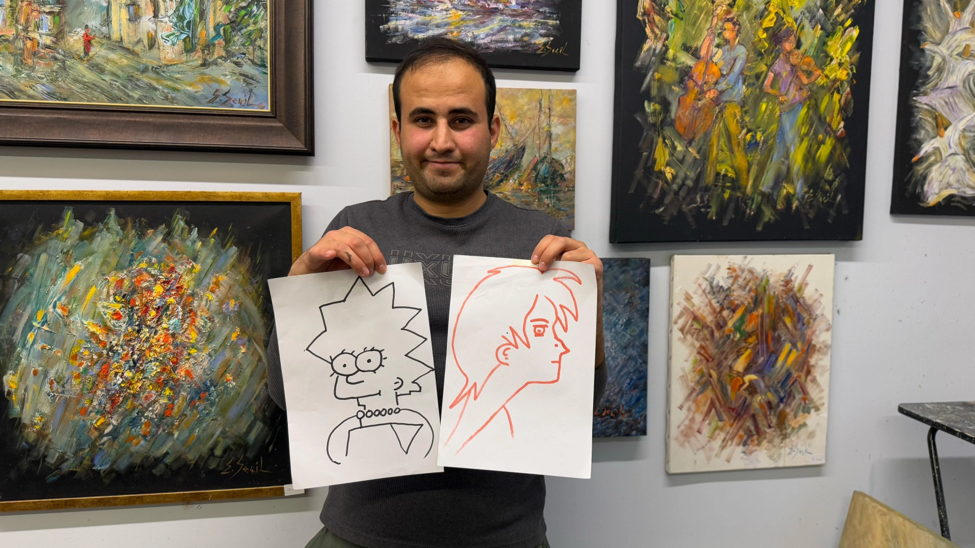 Aynı anda elleriyle 2 farklı resim çizen üniversitelinin hedefi sergi açmak