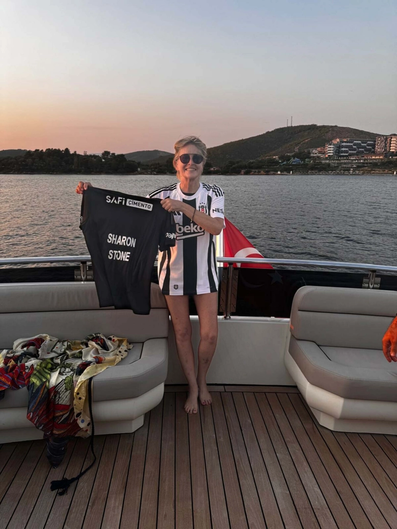 Fırat AKAY/BODRUM (Muğla), (DHA)- DÜNYACA ünlü aktris Sharon Stone, Global İkon Ödülü'nü almak için Muğla'nın Bodrum ilçesine geldi. Ödül töreni öncesi Stone'a, özel bir yatta Beşiktaş Kongre Üyesi ve Altın Küre Yönetim Kurulu Üyesi Barbaros Tapan tarafından Beşiktaş forması hediye edildi.Altın Küre'nin ilk kez Amerika dışında vereceği Global İkon Ödülü'nü almak için Bodrum'a gelen dünyaca ünlü aktris Sharon Stone, ödül gecesi öncesi Beşiktaş Kongre Üyesi ve Altın Küre YK gazeteci Barbaros Tapan'la yat gezisine çıktı. Tapan gezide, Beşiktaş Başkanı Hasan Arat'ın özel olarak hazırlattığı yeni sezon formasını Arat adına ünlü aktriste hediye etti. Beşiktaş formasını çok beğenen Stone, takımın tarihi hakkında bilgi aldı. Stone ardından da formayı giyerek Beşiktaş taraftarlarına sevgilerini yolladı.(DHA)