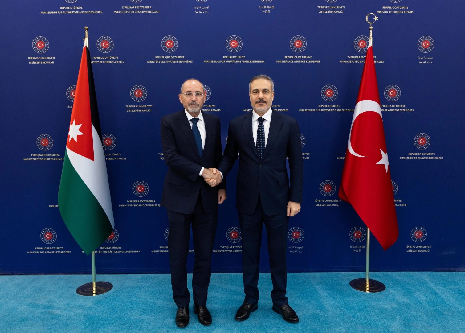 ANKARA, (DHA)- DIŞİŞLERİ Bakanı Hakan Fidan, Ankara'da, Ürdün Dışişleri Bakanı Eymen es-Safedi ile bir araya geldi.Bakan Fidan, Türkiye-Ürdün-Suriye Dışişleri Bakanları Üçlü Toplantısı için Ankara'ya gelen Ürdün Dışişleri Bakanı Eymen es-Safedi ile bakanlıkta bir araya geldi. Basına kapalı gerçekleşen görüşmeden fotoğraf paylaşıldı. (DHA)