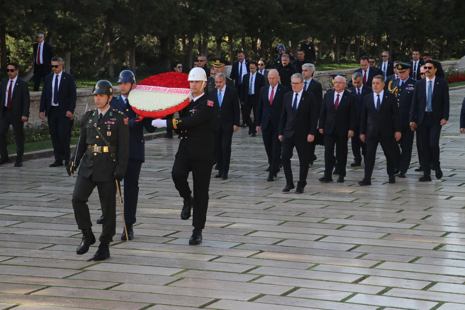 Birleşik Krallık Başbakanı Keir Starmer, Mürted Hava Meydan Komutanlığı ve TUSAŞ'ın ardından Anıtkabir'i ziyaret etti. Starmer'a, Anıtkabir ziyareti esnasında Milli Savunma Bakanı Yaşar Güler ve beraberindeki heyet eşlik etti. Heyet, Aslanlı Yol'dan yürüyerek Atatürk'ün mozolesine geldi. Starmer, mozoleye çelenk bıraktı. Heyet ardından Misak-ı Milli Kulesi'ne geçti. Burada Anıtkabir Özel Defteri'ni imzalayan Starmer, deftere şunları yazdı: