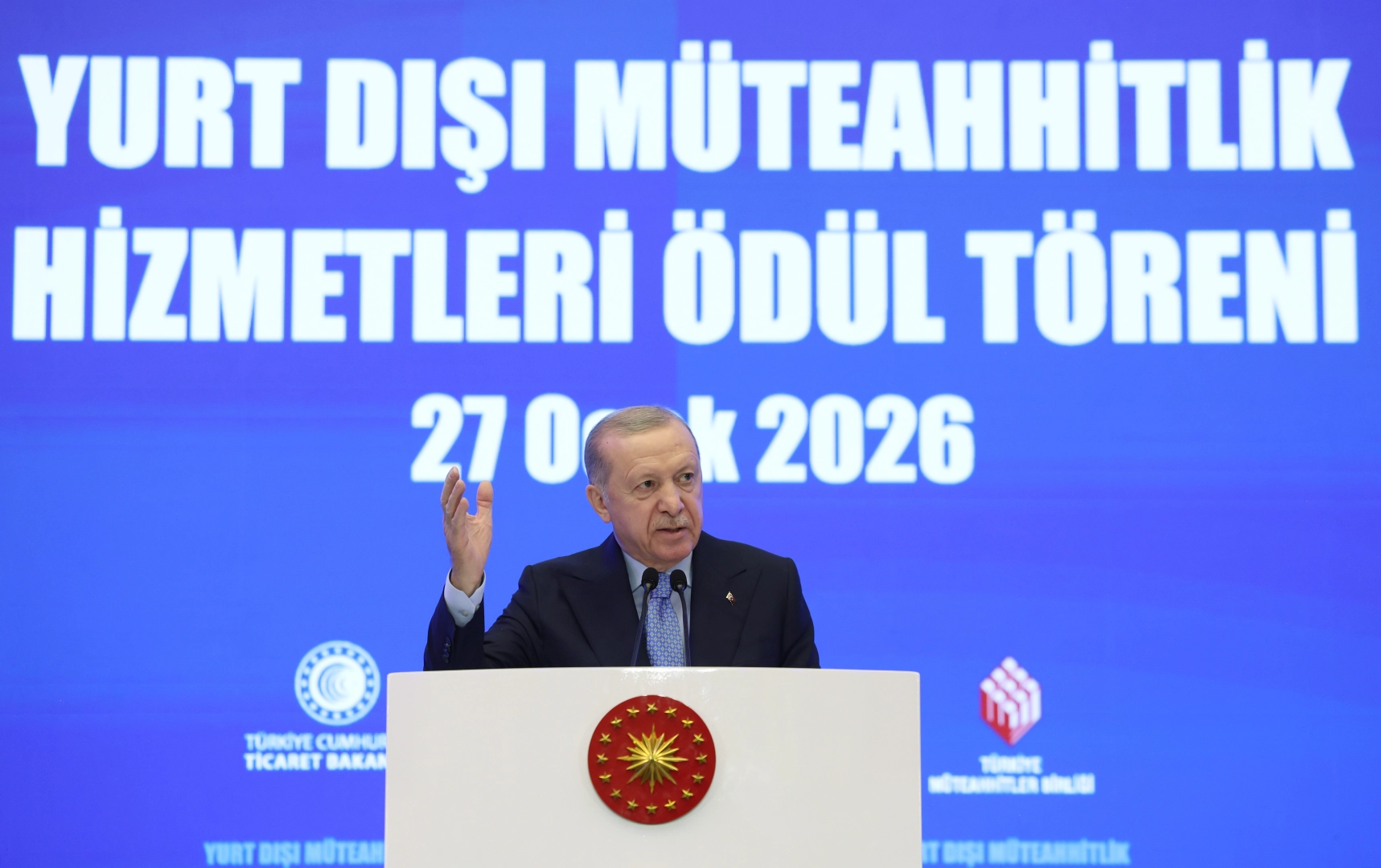 Cumhurbaşkanı Erdoğan, Ankara'daki bir otelde düzenlenen 'Yurt Dışı Müteahhitlik Hizmetleri Başarı Ödülleri Töreni'nde konuştu. Erdoğan, yurt dışı müteahhitlik ve teknik müşavirlik sektörünün, Türkiye'nin uluslararası alandaki en önemli başarı hikayelerinden biri olduğunu söyledi. Türk firmalarının dünyanın dört bir yanındaki projeleriyle Türkiye'nin adını yücelttiğini ifade eden Erdoğan, "Türk müteahhitleri aynı zamanda güçlü mühendislik birikimimizi, iş yapma kültürümüzü ve güvenilirliğimizi de dünyanın farklı ülkelerine taşıyor. Türk inşaat şirketleri son yıllarda yurt dışında gerçekleştirdiği projelerle dünyanın en prestijli firmaları arasında yer almayı başarmışlardır. Firmalarımızın iş disiplini, örnek iş ahlakı ve kalite anlayışı şirketlerimizi küresel ölçekte aranan iş ortakları haline getirmiştir. Türk inşaat sektörünün 1972 yılında başlayan yurt dışı faaliyetleri aradan geçen 54 yılda başarıdan başarıya koşarak, bugün hepimizi gururlandıran bir seviyeye ulaşmıştır. Şimdiye kadar yüzde 90'ı bizim iktidarlarımız döneminde olmak üzere dünyanın 138 ülkesinde, 12 bin 816 proje kapsamında, 557 milyar dolardan fazla iş almış durumdayız. Yakaladığımız bu ivmeyi küresel ekonomideki olumsuzluklara rağmen kararlı bir şekilde sürdürüyoruz" dedi.