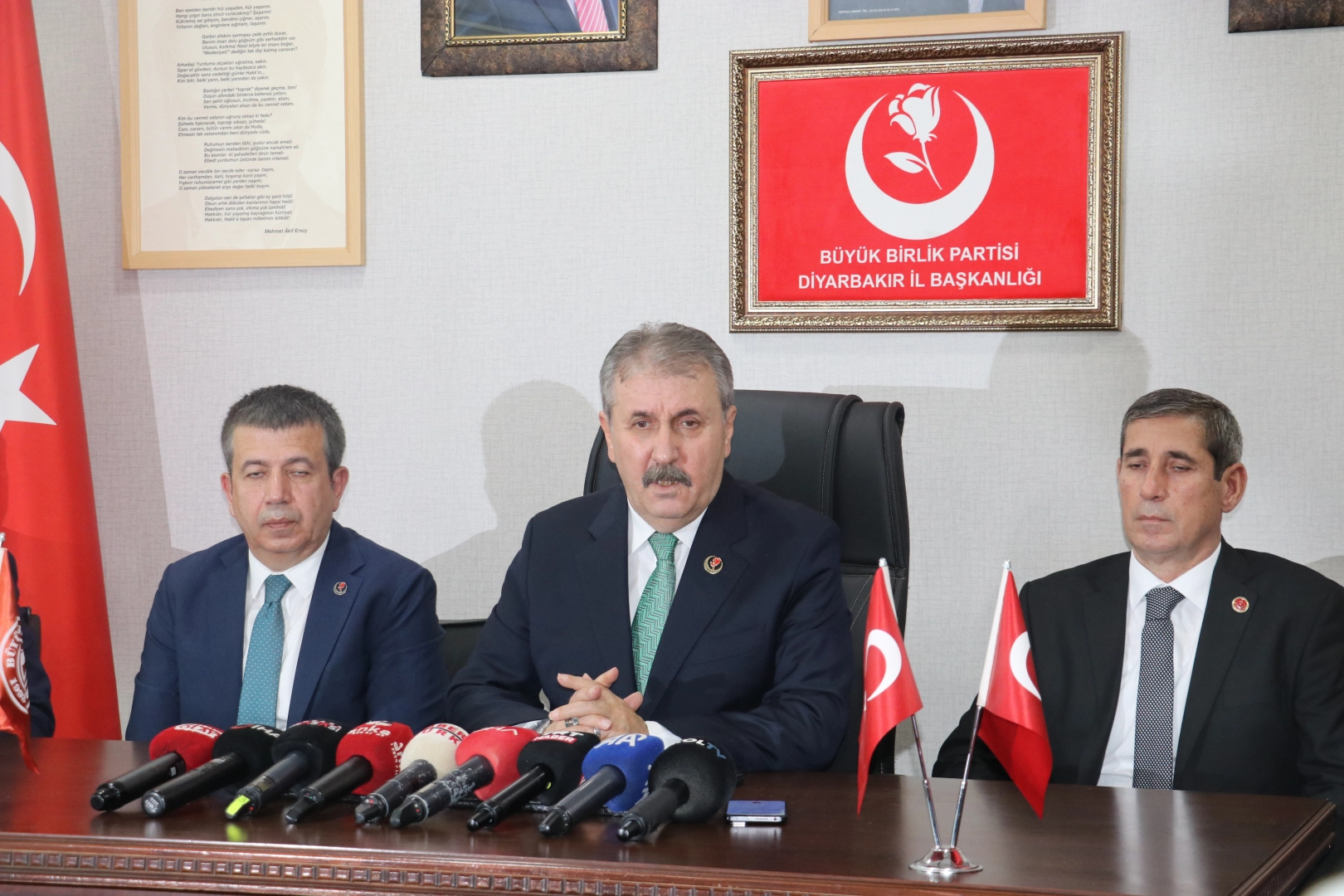 Selim KAYA- Özcan ARGİN/ DİYARBAKIR, (DHA)- BÜYÜK Birlik Partisi (BBP) Genel Başkanı Mustafa Destici, “Terör örgütü silahı bırakmak zorunda kalmıştır ve diz çökmüştür. Her birimiz için büyük bir zaferdir. Bunu böyle görüyoruz. Dolayısıyla karar bu yönüyle yani gelinen bu nokta devletin terörle mücadelesinde ulaştığı bu zafer, bu başarı çok önemlidir ve çok kıymetlidir.” dedi. Çeşitli temaslarda bulunmak üzere Diyarbakır'a gelen BBP Genel Başkanı Mustafa Destici, 7 Mayıs'ta geçirdiği kalp krizi sonucu hayatını kaybeden partisinin Diyarbakır İl Başkanı Mehmet Tekbaran'ın ailesine, merkez Kayapınar ilçesindeki evlerinde taziye ziyaretinde bulundu. Tekbaran'ın eşi ve çocuklarıyla görüşerek başsağlığı dileyen Destici, Kur'an-ı Kerim okudu, dua etti. Destici, daha sonra bölgenin kanaat önderi ve iş insanı Tahsin Arslan'ı çalışma ofisinde ziyaret etti. Ziyaretlerinin ardından partisinin il başkanlığı binasına geçen Destici, burada düzenlediği basın toplantısında, Diyarbakır’ın huzur içerisinde olduğunu belirterek, “Diyarbakır, çeşitli medeniyetlere ev sahipliği yapmış ve en sonunda tabi ki Osmanlı'nın, Osmanlı’dan önce Selçuklu'nun, ondan önce diğer Türk devletlerinin önemli yerleşim yerlerinden olmuş ve Türkiye Cumhuriyeti Devleti'nin de en büyük şehirlerinden bir tanesi. Türk milletinin, Kürt’üyle, Türkmen’iyle, Arap'ıyla, Çerkez'iyle, Alevi, Sünni’siyle herkesin sevdiği bir şehrimiz. Son dönemde terörün sona ermesiyle birlikte devletimizin kahraman güvenlik güçlerimiz eliyle terörü yok etmesinden sonra da şehrimiz huzur içerisinde. Dolayısıyla da İzmir'de nasıl bir huzur varsa güvenlik anlamında da her boyutuyla ya da Eskişehir'de, Sivas'ta ya da Erzurum'da, Trabzon'da, bugün Diyarbakır'da da bunu görmüş olmaktan da büyük bir memnuniyet duyuyorum” dedi. Destici şöyle devam etti:‘TERÖR ÖRGÜTÜ SİLAHI BIRAKMAK ZORUNDA KALMIŞ, DİZ ÇÖKMÜŞTÜR’“2015'den sonra bu hendek süreçleri diye başlayan süreçten sonra biliyorsunuz devletimiz terörün tüm unsurlarına karşı topyekun bir mücadele verdi ve bu mücadelede gerçekten büyük bir başarı yakalandı ve sınırlarımız içerisinde terör örgütüne mensup neredeyse hiç terörist kalmadı. Yani teröristlerden ülkemiz temizlendi ama tabi biz terörü ikiye bölüyoruz. Bir, eli silahlı terörist grup var, bir de bu tarafta siyasi bölücülük ya da etnik bölücülük yapanlar var. Silahlı olan kısımdan temizlendi ve neticede en son PKK'nın kongresini toplayıp PKK'yı feshettiğini ve silahları bırakacağını açıklaması da devletin güvenlik güçleri marifetiyle yaptığı terörle mücadelede kazandığı başarının sonucu olmuştur. Yani terör örgütü silahı bırakmak zorunda kalmıştır ve diz çökmüştür. Dolayısıyla bu Türkiye Cumhuriyeti Devleti için Türk milleti için bir kere daha altını çizerek söylüyorum. Her birimiz için büyük bir zaferdir. Bunu böyle görüyoruz. Tabi diğer taraftan kim terör olsun ister ki hepimiz ‘terör bitsin’ diyoruz. Dolayısıyla karar bu yönüyle yani gelinen bu nokta devletin terörle mücadelesinde ulaştığı bu zafer, bu başarı çok önemlidir ve çok kıymetlidir. Onun için terör örgütünün 'silah bırakıyorum' açıklaması da 'kendimi feshediyorum' açıklaması da elbette bölge başta olma üzere Türkiye'de geniş kesimlerde bir memnuniyet meydana getirmiştir fakat açıklama metnine baktığımızda burada bir samimiyetsizlik olduğunu da görüyoruz. Yani 'Kendimizi feshediyoruz, silahları teslim ediyoruz, nokta.' olsaydı belki kimsenin üzerine söyleyeceği bir söz de olamayabilirdi. Sen topyekun kendini feshedeceksin ve bütün uzantılarınla birlikte silahı bırakacaksın, PYD de YPG de PJAK da bırakacak. Türkiye'de de Irak'ta da başka yapılanmaları var, hepsi bırakacak, hepsi kendini feshedecek ve demokratik bir zeminde elbette ki herkes siyaset yapabilir.” ‘SIRTIMIZDAKİ KAMBURDAN KURTULMAK İÇİN BİR ADIM ATILMIŞTIR’Terörle mücadeleye ayrılan bütçenin ekonomiye harcanması durumunda Türkiye'nin dış ve iç borcunun olmayacağını ifade eden Destici, “Cumhur İttifakı ortaklarımız iyi niyetle bir süreç başlatmıştır. Bu başlatılan süreç daha sonra bir devlet politikası haline dönüşmüştür. Buradaki amaç nedir? Terörü bitirmek, terör örgütünü yok etmek ya da terör örgütünün kendini feshetmesi, silahları bırakması ve Türkiye'nin sırtındaki 40 yıllık kamburdan kurtulmak. Bir taraftan binlerce şehidimizi, on binlerce insanımızı kaybetmişiz ama diğer taraftan 2 trilyon doların üzerinde para harcamışız terörle mücadeleye. Türkiye'nin iç, dış, kamu, özel borç toplamı 500 milyar dolar civarındadır. Bunun dört katı parayı biz terörle mücadeleye harcamışız. Eğer o para terörle mücadeleye değil de ekonomiye harcansaydı bugün Türkiye'nin dış ve iç borcu yoktu, bugün 14 bin lira olan en düşük emekli maaşı 30 bin liraydı, 22 bin lira olan asgari ücret 40 bin liraydı. Her alanda istihdamımız daha rahat olacaktı. Gençlerimiz daha iyi üniversitelerde okuyacaklardı. Onun için bu sırtımızdaki kamburdan kurtulmak için bir adım atılmıştır. Bu iyi niyetli bir adımdır. Cumhur İttifakı ortaklarımızın niyetinden de abdestinden de şüphem yok ama ben karşımızdakilere karşı hala tedbirliyim, temkinliyim ve tam anlamıyla güvenemiyorum. Neden? Çünkü geçmişte yaşananlar var çünkü hala işin içinde Amerika'nın, İsrail'in ya da başka güçlerin olmaya devam ettiğini görüyorum.” (DHA)