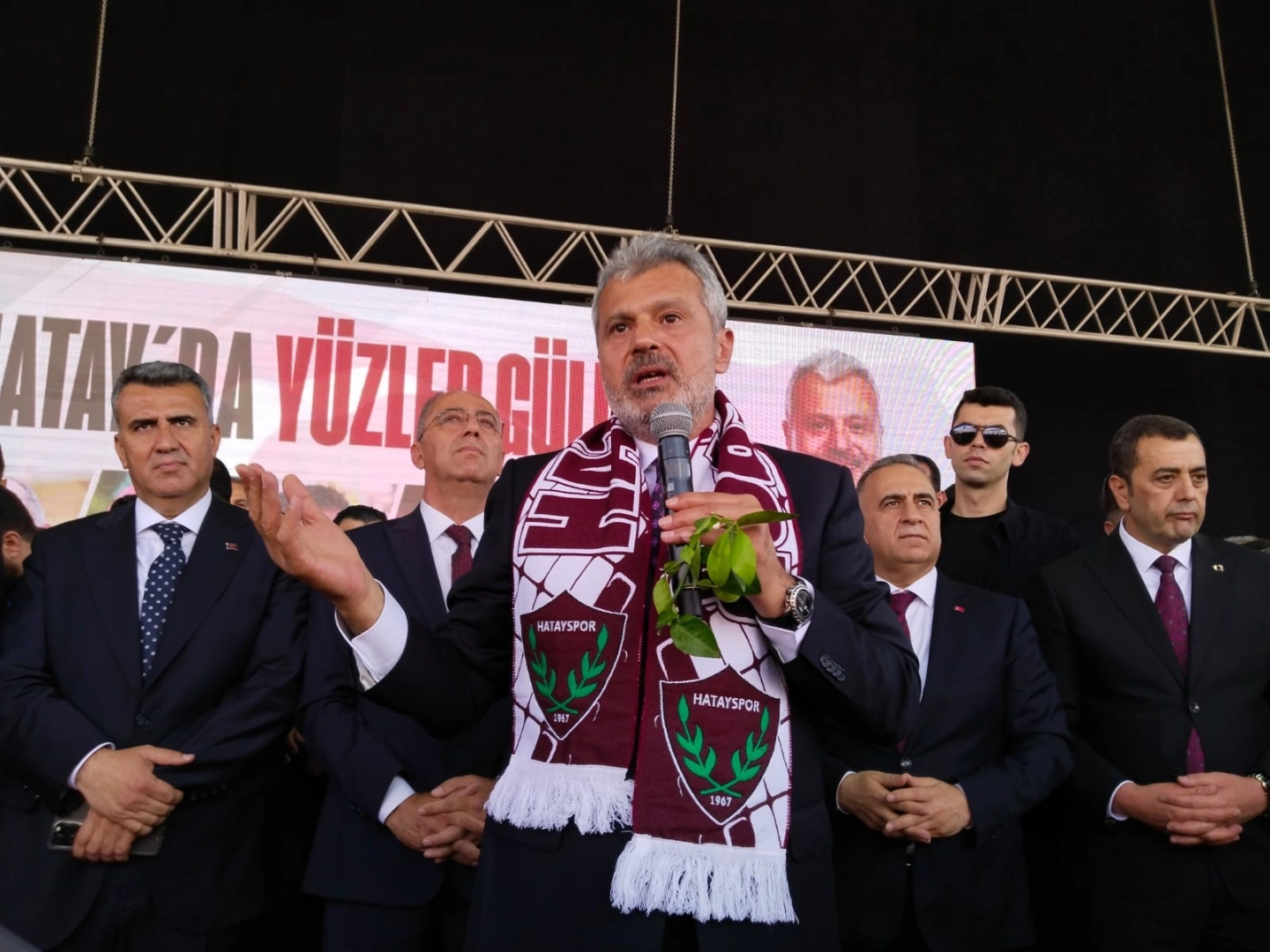 'HATAY'I AYAĞA KALDIRACAĞIZ'Hatay Büyükşehir Belediye Başkanı AK Parti'li Mehmet Öntürk, mazbatasını aldıktan sonra Antakya EXPO Yerleşkesi'nde düzenlenen mazbata töreninde partililerle buluştu. Burada konuşan Öntürk, artık siyasetin bittiğini, millete hizmet zamanının geldiğini söyledi. Öntürk, "Bugün 1 milyon 700 bin nüfusuyla Hatay'ımız kazandı. Biz de birliğimizi, kardeşliğimizi pekiştirerek Hatay'ı ayağa kaldıracağız. Asla ve asla adaletten şaşmayacağız. Oy vermeyen kardeşlerim de var. Hatay'ı 1 milyon 700 bin nüfusuna eşit hizmet yapacağız. Atalarımız gibi bizim için de Hatay şahsi meselemiz olacak. Birazdan belediye çalışanlarımız ile bir toplantı yapacağım. Bu yıl sonunda binlerce konutu teslim edeceğiz. Önümüzdeki yılın 6'ncı ayında hiç kimse bu şehri tanıyamayacak inşallah" dedi. Öntürk daha sonra mazbatasını eline alıp, havaya kaldırarak alana gelen partilileri selamladı. (DHA)