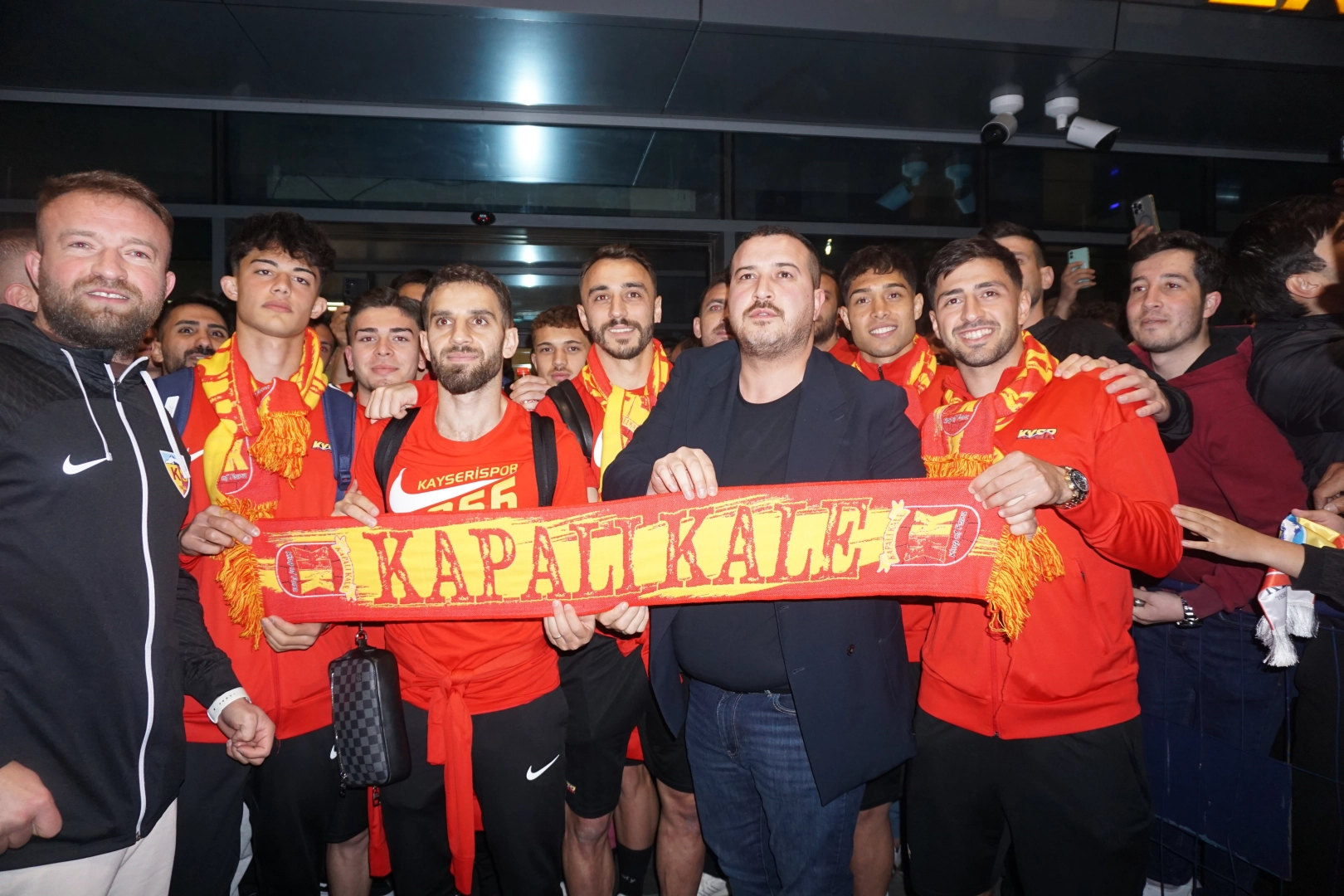 İlyas KAPLAN/ KAYSERİ, (DHA)- İSTANBUL deplasmanında şampiyonluk mücadelesi veren Fenerbahçe ile 3-3 berabere kalan Kayserispor kafilesi Erkilet Havalimanı'nda toplanan taraftarlar tarafından meşale ve tezahüratlarla karşılandı.Kayserispor, Süper Ligin 32’nci haftasında İstanbul’da Fenerbahçe ile karşılaştı. Zorlu müsabakadan 3-3 berabere ayrılarak şampiyonluk yolunda rakibine büyük bir darbe vuran sarı-kırmızılı takım, havayolu ile Kayseri’ye geldi. Saat 00.45 sıralarında Kayseri’ye inen futbolcuları çok sayıda taraftar, meşale ve tezahüratlerle karşıladı. Kayserispor kaptanı Gökhan Sazdağı futbolculara sevgi gösterisinde bulunan taraftarlara 3’lü çektirdi. Futbolcuları taşıyan otobüs daha sonra kulüp tesislerine hareket etti. (DHA)