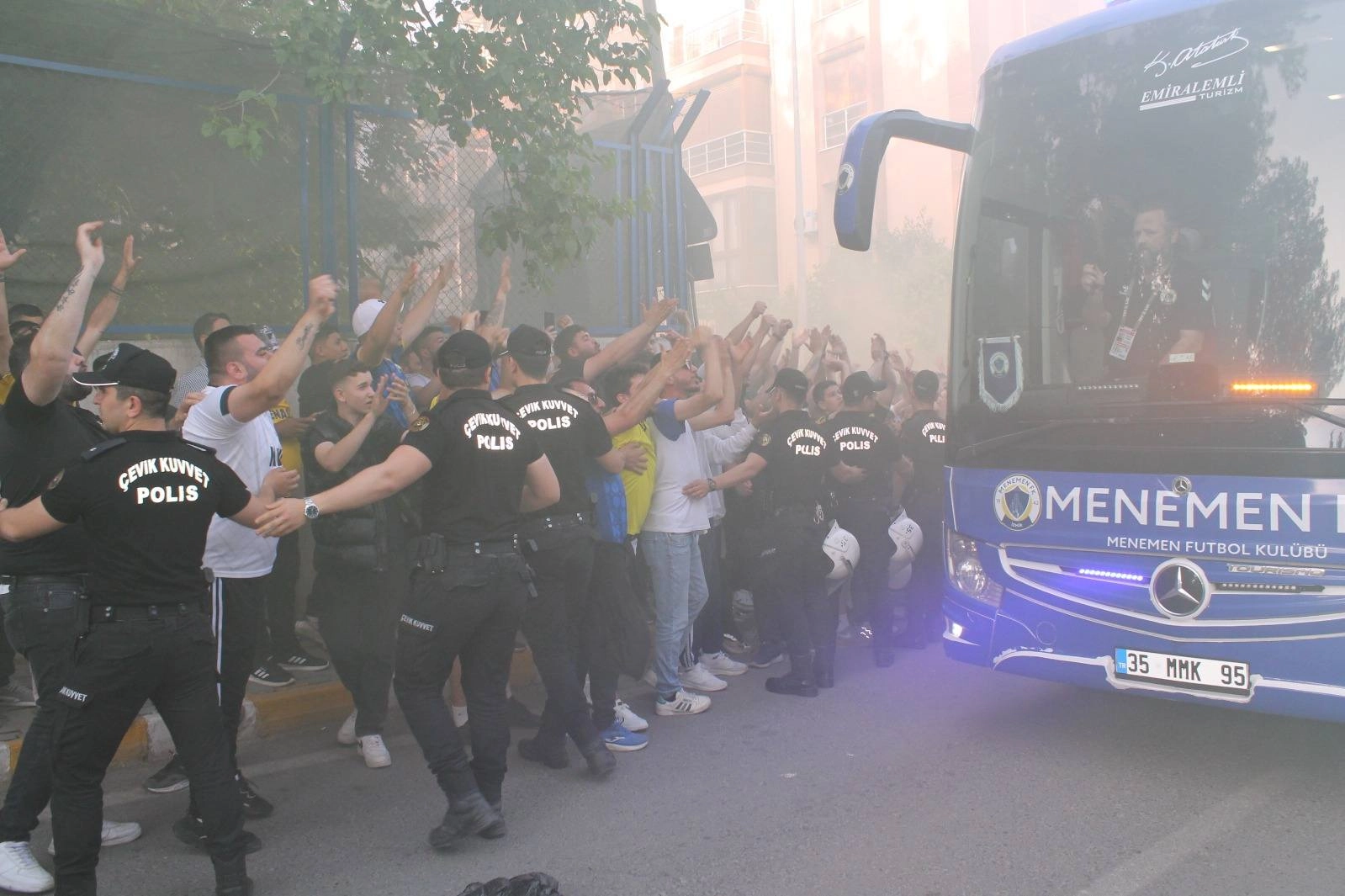 İZMİR, (DHA)2'nci Lig Kırmızı Grup'ta ilk yarıda liderliğe kadar yükseldiği grubu 64 puanla dördüncü sırada tamamlayan Menemen Futbol Kulübü, Play-Off'un ilk turunda saha avantajına rağmen evinde Vanspor'a 3-1 mağlup olup elenmenin üzüntüsünü yaşadı. Play-Off'ta tek maç üzerinden oynanan ilk turda Vanspor'la eşleşen sarı-lacivertli ekip, Menemen İlçe Stadı'nı tıklım tıklım doldurdu. Takımlarına büyük destek veren Menemenli taraftarlar futbolcuları stat girişinde meşaleler ve tezahüratlarla karşılaşıp moral aşıladı. PLAY-OFF KABUSUNU AŞAMADIRakibi önünde 45 3'üncü dakikada yediği golle soyunma odasına yenik giren Menemen FK ikinci yarıda gol aradığı dakikalarda kalesinde 2 gol daha görüp elenmekten kurtulamadı. Play-Off'ta sonraki turları göremeyen Menemen, bu sezonluk macerasını noktalayarak 3 yıl sonra 1'inci Lig'e dönme hedefini yine ıskaladı. Menemen FK ligde geçen sezon da Play-Off oynamasına rağmen ilk turda elenmişti. Geçen sezon Teknik Direktör Yılmaz Vural yönetiminde Play-Off'a kalan Menemen, ilk turda deplasmanda 24Erzincanspor'a 3-2 yenilerek ligi noktalamıştı. Bu sezona büyük umutlarla başlayan İzmir ekibi Teknik Direktör Burhanettin Basatemür yönetiminde lig boyunca iyi bir mücadele sergilese de Play-Off kabusunu yine aşamadı.