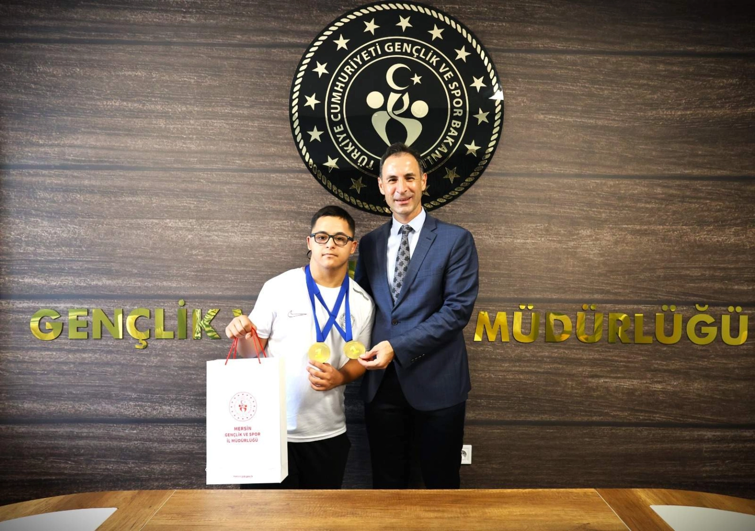 Mustafa ERCAN/MERSİN, (DHA)- ÇEKYA'da düzenlenen Özel Sporcular Down Tenis Avrupa Şampiyonası’nda Mehmet Ali Kahraman hem tek erkeklerde hem de çiftlerde Avrupa şampiyonu olarak yurda döndü.Çekya'da düzenlenen Özel Sporcular Down Tenis Avrupa Şampiyonası sona erdi. Şampiyonaya farklı ülkelerden çok sayıda sporcu katılarak dereceye girmek için mücadele etti. Mersinli özel sporcu Mehmet Ali Kahraman, hem tek erkeklerde hem de çiftlerde Avrupa Şampiyonu olma başarısı göstererek podyuma çıkıp, Türk bayrağını dalgalandırıp, İstiklal Marşı’nı okuttu. Kente dönen özel sporcu Mehmet Ali Kahraman, antrenörü Hülya Önem ile birlikte Gençlik ve Spor İl Müdürü Göksun Öz'ü, ziyaret ederek başarısını paylaştı. Kahraman ve antrenörü Hülya Önem'i tebrik eden il müdürü Göksun Öz, "Öncelikle sizlerin elde ettiği bu büyük başarı bizleri gururlandırmıştır. Milli gurumuz Mehmet Ali Kahraman'ın azmi ve bu azim sonunda gelen Avrupa Şampiyonluğu, Antrenörü eşliğinde disiplinli çalışmasının karşılığıdır. Sporcumuzu, Antrenörümüzü ve siz kıymetli ailesini yürekten kutluyor, Ülkemizi ve İlimizi en iyi şekilde temsil ettiğiniz için teşekkür ediyor, başarılarının devamını diliyoruz" dedi. (DHA)