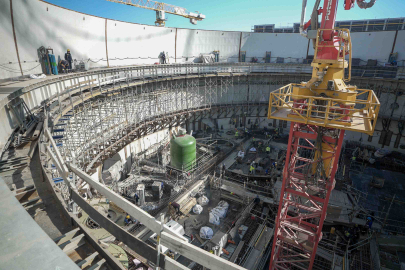 MERSİN, (DHA)- RUSYA Devlet Nükleer Enerji Kuruluşu Rosatom’un Türkiye'de inşa ettiği Akkuyu Nükleer Güç Santrali’nin (NGS) 2’nci güç ünitesinin inşaatında, reaktör tesisinin birinci devresinin önemli bir unsuru olan basınç kompansatörünün kurulumu gerçekleştirildi. Basınç kompansatörü, birinci devrede basıncı oluşturmak ve belirlenen sınırlar içinde tutmak için tasarlandı.Montaj, ekipmanın reaktör binasının açık üst kısmından montaj alanına taşınmasını sağlayan Open Top teknolojisini kullanan kendinden tahrikli bir paletli vinç kullanılarak gerçekleştirildi. Uzmanlar kompansatörü özel bir travers kullanarak güvenli bir şekilde sabitledi, dikey konuma getirdi ve tüm güvenli çalışma standartlarına uygun olarak yerine monte etti. Operasyon yaklaşık 12 saat sürdü.Akkuyu Nükleer Genel Müdürü Sergey Butckikh konuya ilişkin açıklamasında şunları söyledi:“Basınç kompansatörü, reaktör tesisinin istikrarlı ve güvenilir bir şekilde çalışmasını sağlayan önemli bir unsur. Ekipmanın yüksek kalitede kurulmasını sağlayan vinç operatörleri ve montaj ekibinin uyum ve profesyonelliğine dikkat çekmek isterim. Basınç kompansatörünün montajının tamamlanması, reaktör tesisinin kurulumuna planlandığı gibi devam etmemizi sağlayacak.”