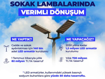 ANKARA, (DHA)- ENERJİ ve Tabii Kaynaklar Bakanı Alparslan Bayraktar, 2030 yılına kadar cadde ve sokak aydınlatmaları için 1,2 milyon LED armatür kurulumu yapılarak enerjiden yıllık 720 milyon lira tasarruf sağlanacağını açıkladı. Enerji ve Tabii Kaynaklar Bakanlığı, bu yılın başında hayata geçirdiği Enerji Verimliliği Stratejisi'ne yönelik adımlar atıyor. Bunlardan biri de elektrik üretim, iletim ve dağıtımında kayıpları azaltmak. Bakanlık, bu hedef doğrultusunda bugüne kadar genel aydınlatma sistemine 140 bin LED armatür ekledi. Cadde ve sokakların aydınlatılmasında kullanılan yüksek basınçlı sodyum buharlı lambalar yerine yüzde 50 tasarruf sağlayan LED armatürler sisteme dahil ediliyor. Enerji ve Tabii Kaynaklar Bakanlığı'nın koordinasyonunda Türkiye Elektrik Dağıtım A.Ş. (TEDAŞ) ve elektrik dağıtım şirketlerinin yürüttüğü verimlilik çalışması ile bugüne kadar genel aydınlatmada 140 bin LED armatür kurulumu gerçekleştirildi. 1 Temmuz itibarıyla 140 bin LED armatürden yıllık bazda yaklaşık 82 milyon liralık tasarruf elde edildi. Türkiye genelinde yaklaşık 10 milyon armatür bulunuyor. 2023 yılında Türkiye'de genel aydınlatma amacıyla 5 bin 24 gigawatt-saat elektrik tüketildi. Oluşan faturayı ödemek için Bakanlık bütçesinden 23,6 milyar lira, belediye ve il özel idarelerinin bütçelerinden de 5,2 milyar lira çıktı. '10 STRATEJİK AMAÇ BELİRLEDİK'Enerji ve Tabii Kaynaklar Bakanı Bayraktar, yazılı açıklama ile enerji verimliliğinde farkındalığın çok önemli olduğunu belirterek, "Tüm dünyada enerji verimliliğine yılda 600 milyar dolar yatırım yapılıyor. Bu alanda yıllık istihdam artışı 1 milyon kişiye ulaşmış durumda. Sayın Cumhurbaşkanımızın ortaya koyduğu 2053 Net Sıfır Emisyon hedefini göz önüne aldığımızda tüm planlamalarımızda enerji verimliliği önemli bir rol üstleniyor. 2024-2030 yıllarını kapsayan 2'nci Ulusal Enerji Verimliliği Eylem Planı doğrultusunda 10 stratejik amaç belirledik. 61 eylemimiz var. Bunlardan biri de genel aydınlatmada enerji verimliliğinin artırılması. Bu eylem doğrultusunda 2030 yılına kadar 1,2 milyon sokak lambasını verimli hale getireceğiz. Böylece her yıl 720 milyon liralık tasarruf sağlayacağız" dedi. (DHA)