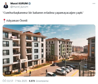 Bakan Kurum, Adıyaman Örenli'deki deprem konutlarını paylaştı