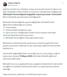 ANKARA, (DHA)- ADALET Bakanı Yılmaz Tunç, bilirkişilerin daha nitelikli ve donanımlı hale gelmesini sağlayacak 'Bilirkişilik Yönetmeliğinde Değişiklik Yapılmasına Dair Yönetmelik'in Resmi Gazete'de yayımlanarak yürürlüğe girdiğini duyurdu.Bakan Tunç, sosyal medya hesabından yaptığı açıklamada, "Adaletin tecellisi için hakikatin ortaya çıkmasında önemli bir görev icra eden bilirkişilerin daha nitelikli ve donanımlı hale gelmesini sağlayacak 'Bilirkişilik Yönetmeliğinde Değişiklik Yapılmasına Dair Yönetmelik' Resmi Gazetede yayımlanarak yürürlüğe girdi. Bilirkişilik Yönetmeliğinde yapılan değişiklikle, bilirkişilik temel eğitimlerinin Bakanlığımızın izniyle; üniversiteler, Türkiye Adalet Akademisi veya kamu kurumu niteliğindeki meslek üst kuruluşları tarafından verilmesi düzenleme altına alınmıştır. Bilirkişilik Temel Eğitim Kitabı güncellenmiştir" dedi.'3 YILDIR AÇILAMAYAN EĞİTİMLERİ YENİDEN BAŞLATIYORUZ'Bakan Tunç, ayrıca, "Bilirkişilerin belirlenmesinde performans sisteminin getirilmesi için yapılan çalışmalar nedeniyle 3 yıldır açılamayan eğitimleri de yeniden başlatıyoruz. Yönetmelik değişikliğimizden sonra ilgili kurum ve kuruluşların eğitim başvuruları alınarak 15 Mayıs 2025 tarihinde bilirkişilik eğitimleri açılmaya başlanacak. Bilirkişilik kurumunu güçlendirmeye, yargılama faaliyetlerinin daha etkin ve sağlıklı bir şekilde yürütülmesine katkı sunmaya kesintisiz devam edeceğiz. Yargı camiamıza, ülkemize ve milletimize hayırlı olsun" ifadelerini kullandı. (DHA)