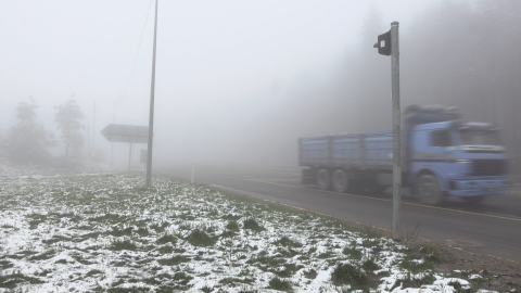 Mutlu YUCA/BOLU, (DHA)- BOLU Dağı geçişinde yağan karla birlikte yeşil alanlar kısmen karla kaplandı. Bolu Dağı’nın D-100 Karayolu geçişinde etkili olan sis nedeniyle görüş mesafesi yaklaşık 20 metreye düştü.Bolu Dağı geçişinde sabah saatlerine doğru hafif kar yağışı etkili oldu. Yağışın ardından yeşil alanlar kısmen karla kaplandı. Bolu Dağı’nın D-100 Karayolu geçişinde etkili olan sis nedeniyle görüş mesafesi yaklaşık 20 metreye düştü. Sürücüler yoğun sis nedeniyle yavaş ilerledi. (DHA)