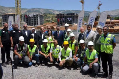 "Burada gördüğümüz yapılar zemin etütleri yapılarak sağlam zemine, yine afetlere karşı en iyi tekniklerden olan tünel kalıp yöntemiyle gerçekleştirilen yapılar. TOKİ 11 ilimizde 133 binden fazla konut inşa etmişti. Bu konutlarda bir can kaybı yaşanmadı depreme karşı iyi bir testten geçmiş oldular. TOKİ'nin bir anlamda marka değeri de yükseldi bu afet vesilesiyle. İşte burada da TOKİ'nin tekniğiyle inşa edilen bir mahallemizdeyiz. İnşallah en kısa sürede buradaki yapıları tamamlayıp hak sahiplerine tahsis edeceğiz. Bir taraftan da yeni inşaatlar başlayacak. Toplamda baktığınızda 650 bin konuttan bahsediyoruz. İşte köy evleri, depolar, ahırlar derken 850 bin civarında yeni birim yapılacak deprem sonrası. Bu tabi çok büyük bir hadise ama devletimiz güçlü, devlet millet el ele inşallah bu yükün altından da hep birlikte kalkacağız. Sayın Cumhurbaşkanımız başından beri, ilk anından beri süreci yakından takip ediyor, deprem sonrasında sadece Kahramanmaraş'a 6 ziyaret gerçekleştirdi bu süreçte. Diğer depremden etkilenen illerimize defalarca gitti. Bakanlarımız, kurumlarımız herkes sahada, çalışmaları devam ettiriyor. Bunlar imtihan zamanları, afetler hakikaten millet olarak sınandığımız zamanlar. Devlet olarak, millet olarak bu imtihandan da inşallah alnımızın akıyla çıkacağız. Geçmişte birçok afet yaşadık, afetlerini yaralarını hep birlikte sardık. İşte Van'da bunu yaptık, Malatya'da yaptık, Elazığ'da, Bingöl'de, yine yangınlarda, sellerde, Akdeniz Bölgesinde, Karadeniz'de bunları gerçekleştirdik. Bu bölgemizde de inşallah en kısa sürede depremin yaralarını saracağız."