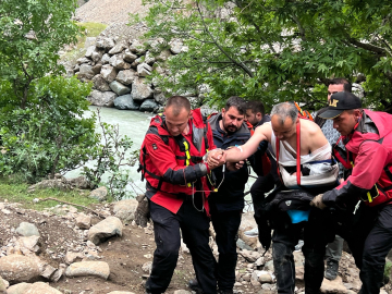 ARAMA ÇALIŞMALARINDA KAYALIKLARA ÇARPAN DALGIÇ POLİS YARALANDIHakkari'nin Yüksekova ilçesinde girdiği derede kaybolan İbrahim Kom'u arama çalışmaları sırasında dalış yaparken kayalıklara çarpan Van Emniyet Müdürlüğü'nde görevli dalgıç polis Fatih T., yaralandı. Sudan çıkarılan Fatih T.’ye ilk müdahale olay yerinde yapıldı. Omuzlarında kırıklar olduğu öğrenilen polis memuru, iş makinesi yardımıyla ambulansa götürüldü. Yüksekova Devlet Hastanesine kaldırılan Fatih T.'nin sağlık durumunun iyi olduğu belirtildi. (DHA) Yaşar KAPLAN/ YÜKSEKOVA (Hakkari), (DHA)