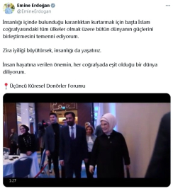 Emine Erdoğan'dan 'Üçüncü Küresel Donörler Forumu' paylaşımı