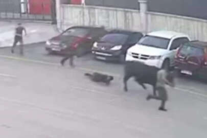 Kentte, kurbanlık olarak satılmak üzere 26 Haziran'da pazara götürülen boğa, Yakutiye ilçesi Sanayi Mahallesi'nde sahiplerinin elinden kaçtı. Boğayı yakalamak isteyen kişi boynuzlarından tutunca, metrelerce yerde sürüklendi ve bir süre sonra da bırakmak zorunda kaldı. Boğa, bir otomobil tamirhanesine girdi. Boğayı görünce panik yaşayan müşterilerle çalışanlar, sağa sola kaçıştı. Kıstırılan boğa yakalanırken, yaşananlar iş yerinin güvenlik kameralarına yansıdı. (DHA)