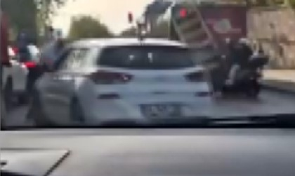 Leyla YILDIZ/ İSTANBUL, (DHA)- ATAŞEHİR’de trafikte iki sürücü arasında kavga çıktı. Sürücülerden biri kullandığı otomobili kavga ettiği diğer sürücünün üzerine sürerek, park halindeki araç ile kendi aracı arasında sıkıştırmaya çalıştı. Olay saat 18.00 sıralarında Kayışdağı Mahallesi Kayışdağı Caddesi'nde meydana geldi. Caddede ilerleyen 34 MJM 338 ve 34 KMT 994 plakalı araçların isimleri öğrenilemeyen sürücüleri arasında bilinmeyen bir sebeple tartışma çıktı. Tartışmanın büyümesi üzerine aracından inen 34 KMT 994 plakalı aracın sürücüsü, diğer sürücüyü aracından indirmek istedi. Bu sırada 34 MJM 338 plakalı aracın sürücüsü, kullandığı otomobili hareket ettirerek diğer sürücüyü park halindeki bir araç ile kendi otomobili arasında sıkıştırmaya çalıştı. Aracından inen sürücü son anda iki araç arasında sıkışmaktan kurtuldu. Daha sonra 34 MJM 338 plakalı otomobil bölgeden uzaklaştı. Yaşananlar, başka bir sürücü tarafından cep telefonu ile kaydedildi. (DHA)