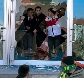 İhsan DÖRTKARDEŞ/İSTANBUL, (DHA)- VEFASPOR - Ayazmaspor arasındaki Süper Amatör Lig Klasman maçının ardından bir grup taraftar iddiaya göre, Avcılar Atatürk Stadyumu'nun cam kapısını kırarak rakip taraftarlara saldırmaya çalıştı. Polis ekipleri grubu dağıtırken, o anlar cep telefonu kamerasına yansıdı. Olay, Firuzköy Mahallesi'ndeki Avcılar Belediyesi Atatürk Stadyumu'nda 12 Nisan Cumartesi günü meydana geldi. Stadyumda oynanan klasman maçını Vefaspor 62'nci dakikada Oğuzhan Türkmen'in attığı golle 1-0 kazandı. Zaman zaman gergin geçen karşılaşmanın ardından Ayazmaspor taraftarları stadyumdan çıkıp otobüslerine binecekleri sırada Vefaspor taraftarlarıyla tartıştı. Neden çıktığı bilinmeyen tartışma bir anda kavgaya dönüştü. Taraftarlar tribünlerin bulunduğu bölüme girmeye çalıştı. Bu sırada taraftarlardan bazıları cam kapıyı kırdı. Polis ekipleri müdahale ettiği taraftarları dağıttı. O anlar cep telefonu kamerasına yansıdı. (DHA)