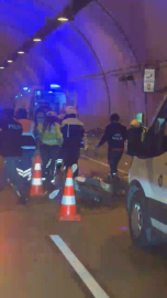Hasan YILDIRIM-Hiba KARGI/İSTANBUL,(DHA) - BOMONTİ-Dolmabahçe Tüneli’nde sürücüsünün gidon hakimiyetini kaybettiği motosiklet, 2 araca çarptıktan sonra takla attı. Ağır yaralanan motosiklet sürücüsü ambulansla hastaneye kaldırıldı.Kaza saat 14.00 sıralarında Bomonti-Dolmabahçe Tüneli içerisinde, Beşiktaş istikametinde meydana geldi. Tünelde 2 aracın arasından geçmeye çalışan motosiklet, sürücüsünün gidon hakimiyetini kaybetmesi sonucu araçlara çarptıktan sonra takla attı. Kaza nedeniyle motosiklet sürücüsü yola savruldu. Kazayı görenlerin ihbarı üzerine bölgeye polis ve acil sağlık ekipleri geldi. Sağlık ekibinin ilk müdahalesinde ağır yaralandığı belirlenen motosiklet sürücüsü, olay yerindeki ilk müdahalenin ardından ambulansla hastaneye kaldırıldı. Kaza nedeniyle tünel içerisinde trafik yoğunluğu oluştu. Kazaya karışan araçların yoldan kaldırılmasının ardından araç geçişleri normale döndü. (DHA)