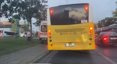 İstanbul- Şişli’de trafikte ilerleyemeyen ambulans kaldırımdan gitti