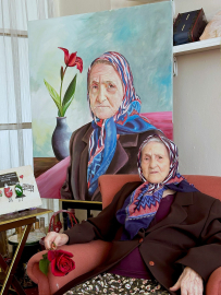 Kadınlar Günü'nde ziyaret ettiği huzurevinin en yaşlısını resmetti