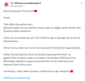 Milli Savunma Bakanlığı'ndan 'Kadınlar Günü' paylaşımı