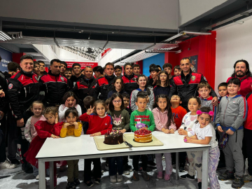 ERZURUM, (DHA)- ERZURUM'da özel bir kolejin öğrencileri, Türk Polis Teşkilatı'nın 180'inci kuruluş yıl dönümü ve Polis Haftası dolayısıyla 'sahte ihbar'da bulunarak çağırdıkları polisler için pasta kesti.Okul yetkilileri, telefonla polisi arayıp okullarında kavga çıktığını belirterek ihbarda bulundu. Motosikletli Polis Timleri kısa sürede ihbarın yapıldığı okula gitti. Kavganın nerede olduğunu anlamaya çalışan polisleri alkışlarla karşılayan okulun öğretmen ve öğrencileri polisler için pasta kesip, günlerini kutladı. Polislere pasta ikramında bulunan öğrenciler, "Sizi çok seviyoruz. Gününüz kutlu olsun. Okulumuza kısa sürede geldiğiniz için de teşekkür ediyoruz" dedi.Polisler öğrencilerle birlikte kestikleri pastanın ardından tekrar görev yerlerine döndü. (DHA)