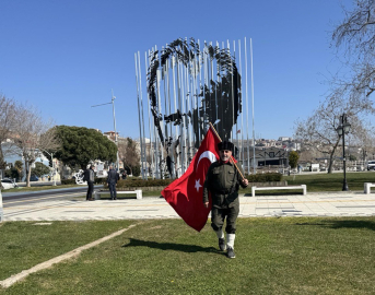 Abdullah YALÇIN/TEKİRDAĞ, (DHA)- ÇANAKKALE Savaşı gazisi torunu Saffet Gümüş, zaferin 110'uncu yılında, İstanbul'dan Çanakkale'ye 'Torundan Dedeye Vefa Yürüyüşü'nde Tekirdağ'a ulaştı.'18 Mart Çanakkale Zaferi ve Şehitleri Anma Günü' etkinlikleri kapsamında, Çanakkale Savaşı gazisi torunu ve Tokat Onbeşli Torunları Derneği Başkanı Saffet Gümüş, İstanbul'dan başlattığı 'Torundan Dedeye Vefa Yürüyüşü'nün 4'üncü gününde Tekirdağ'a ulaştı. Bu yıl yürüyüşünün 7'ncisini gerçekleştiren Gümüş, üzerindeki o dönemin askeri üniforması ile Tekirdağ'da vatandaşların ilgisini gördü. Gümüş'ü, Tekirdağ sahilinde Süleymanpaşa Belediye Başkan Yardımcısı Ergün Güleryüz karşıladı.Elinde sancak ile yürüyerek Çanakkale'ye giden Saffet Gümüş, "Atalarımızın bize emanet etmiş olduğu bu toprakları, bu al bayrağı ölene kadar bir ömür boyu taşımaya çalışacağız. O ruhu gelecek nesillere taşımaya çalışacağız. 3 gün önce Avcılar Belediye Başkanımız Utku Caner Çaykara'dan almış olduğumuz bu al bayrağı nasip olursa 18 Mart günü Çanakkale Valimize teslim edeceğiz. Orada şehitlerimize dualarımızı okuyarak nasip olursa sağ salim İstanbul'a dönmeye çalışacağız" diye konuştu.Gençlere çağrıda bulunan Gümüş, "Şükürsüz olmayın, halimize şükredelim. Bizim gidecek başka bir vatanımız yok. Vatanımıza, bayrağımıza, devletimize sahip çıkalım" dedi. (DHA)