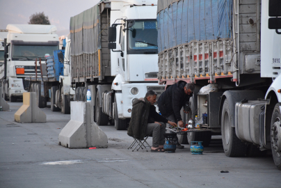Mehmet Selim YALÇIN/SİLOPİ (Şırnak), (DHA)- ŞIRNAK’ın Silopi ilçesindeki Habur Sınır Kapısı üzerinden Irak’a yük taşıyan şoförler, ramazan ayında iftarlarını, mutfağa çevirdikleri TIR dorsesindeki dolaplarda hazırlayıp, birbirlerine ikram ederek açıyor.Silopi’de Habur Sınır Kapısı üzerinden Irak’a yük taşıyan TIR şoförleri, sıra beklerken yemeklerini araçlarının dorsesindeki dolaplarda hazırlayarak iftarlarını açıyor. Dorse dolapları seyyar bir mutfağa çevrilerek pişirilen yöresel yemekler, iftar zamanı kasalarda veya yere serilen sofralarda diğer şoförlerle birlikte yeniliyor. Özellikle Şanlıurfalı şoförler, iftar sofralarında kentleriyle özdeşleşmiş çiğ köfte hazırlayarak iftarı bekliyor.‘LOKANTAYA GİTMEK YERİNE KENDİMİZ HAZIRLIYORUZ’Şanlıurfa Viranşehirli Erdal Günhan, lokantaya gitmek yerine yemeklerini kendilerinin hazırladığını belirterek, “Burada zamanımızı boşa harcamak istemiyoruz. Lokantaya gitmek yerine kendi iftarımızı hazırlıyoruz. Hem vakit geçiriyoruz hem de diğer arkadaşlarla sohbet ediyoruz. Fazla yapıyoruz, gelen arkadaşlar da bizle iftar yapabiliyorlar” dedi.Niğdeli İsmail Sandallı da “Tüm iftar hazırlıklarımız burada yapılıyor. Tüpümüz, yemeğimiz her şeyimiz burada. Gurbette olmak zor ama Ramazan’ı burada en iyi şekilde değerlendirmeye çalışıyoruz” diye konuştu.Şanlıurfalı Rafet Günhan da iftar hazırlıklarına 2 saat öncesinden başladıklarını belirterek, “Pirinç pilavı, çorba ve şimdi de saç tava yapıyorum. 24 saat burada olduğumuz için zamanımızı bu şekilde değerlendiriyoruz” ifadesini kullandı.Irak Zaho'ya buğday taşıyan Batmanlı Sadık Güneş ise iftar için tavuk haşlama, bulgur pilavı ve salata hazırlığı yaptığını söyledi. (DHA)