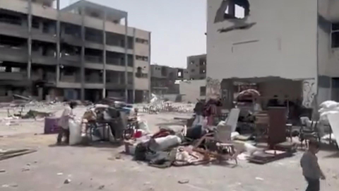 Vahdet AYAZ, (DHA)- Birleşmiş Milletler’in Filistin Ajansı (UNRWA), Refah’tan kaçan Gazzelilerin Han Yunus’taki, halihazırda harap olmuş ve suyun bulunmadığı UNRWA okullarına geldiğini duyurdu.UNRWA’dan yapılan açıklamada, “Han Yunus'taki UNRWA okullarına dönen aileler ve çocuklar, 'güvenlik' ve 'sığınak' arıyor. Bu BM tesislerinin halihazırda etkilendiği yerlerde büyük hasar var. Han Yunus'ta su bulunmuyor. Dünyanın gözleri önünde yaşanan yeni bir çaresizlik seviyesi” denildi.Görüntü Dökümü-------------------------------Harap halde olan okuldan görüntü-Dönüş yapan ailelerin eşyaları