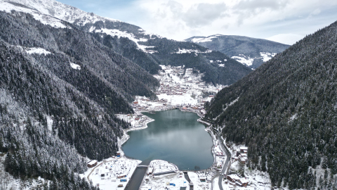 Selçuk BAŞAR-Efnan DEMİREREN-Nurullah CABRİ/ÇAYKARA (Trabzon)- TRABZON’da dünyaca ünlü turizm merkezi Uzungöl, nisan ayında yağan karla beyaza büründü. Ortaya çıkan seyirlik manzara dronla görüntülendi.Çaykara ilçesine 20 kilometre uzaklıkta, denizden 1250 metre yükseklikte yer alan, doğal güzelliğiyle Doğu Karadeniz'in turizm merkezi Uzungöl, nisan ayında yağan karla birlikte beyaza büründü. Uzungöl’de, kendisini besleyen dere ve çevresiyle güzel görüntüler oluştu. Otantik mimarisi, dik yamaçları ve orman örtüsünün bir arada bulunduğu Uzungöl'de, kar kalınlığı 20 santimetreye ulaştı. Turizm merkezi, karın ve doğanın keyfini çıkarmak isteyen ziyaretçilerin ilgi odağı oldu. Uzungöl'de kar güzelliği, dron kamerasına da yansıdı.‘UZUNGÖL’Ü HER MEVSİMDE GÖRMEK GEREK’ Erzincan’dan gelerek ilk kez Uzungöl’ü ziyaret eden Naciye Atik, “İlk defa geldim. Çok güzeldi. Göl etrafında yürüyüş yapıyoruz. Çok beğendim. Erzincan’da da kar vardı ama burası çok güzel. Bu mevsimde de her mevsimde de görülmesi gerekiyor. Mutlu oldum. Memlekette böyle güzel bir yerin olması çok güzel. Burayı canlı görmek beni mutlu etti. Bu güzellikleri korumamız gerekiyor” dedi. ‘BAHAR AYINDA KIŞI YAŞIYORUZ’Ertuğrul Kaan Budur, Uzungöl’de henüz baharı yaşayamadıklarını ifade ederek, “Nisan ayında burada olmak çok güzel. Bahar ayında kışı yaşıyoruz. Gelen misafirler içinde güzel oluyor. Hala bahar ayına giremedik. Kışı seviyoruz. Turistlerle fotoğraf çekiyoruz. Bizler içinde güzel oluyor. Yazın ayrı, bahar mevsiminde ayrı, kışın bambaşka güzel oluyor” diye konuştu. ‘UZUNGÖL’ÜN GÜZELLİĞİ İÇİMİ AÇIYOR’Minel Atak, Uzungöl’de fotoğraf çekilmenin eğlenceli olduğunu kaydederek, “Erzurum’dan TÜBİTAK yarışması için Trabzon’a geldim. Erzurum’da 8 ay boyunca kar görüyordum burada da görmüş oldum. Uzungöl’ün beyazlığı, saflığı ve güzelliği içimi açıyor. Burayı ziyaret etmek güzel. Balıkları izlemek ve fotoğraf çekilmek eğlenceli” ifadelerini kullandı. (DHA)