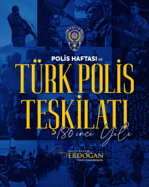 ANKARA, (DHA)- CUMHURBAŞKANI Recep Tayyip Erdoğan, "Türk Polis Teşkilatımızın kuruluşunun 180’inci yıl dönümünü canıgönülden tebrik ediyor; Polis Haftası’nın Emniyet Teşkilatımız, ülkemiz ve milletimiz için hayırlara vesile olmasını diliyorum" dedi.Cumhurbaşkanı Erdoğan, Türk Polis Teşkilatı'nın kuruluşunun 180'inci yıl dönümü nedeniyle mesaj paylaştı. Erdoğan, "Türk Polis Teşkilatımızın kuruluşunun 180’inci yıl dönümünü canıgönülden tebrik ediyor; Polis Haftası’nın Emniyet Teşkilatımız, ülkemiz ve milletimiz için hayırlara vesile olmasını diliyorum. Ülkemizin emniyeti, milletimizin geleceği için tereddüt etmeden canını feda eden tüm şehit polislerimizi, askerlerimizi, jandarmalarımızı, güvenlik korucularımızı rahmetle yad ediyorum. Hayatta olan gazilerimize hayırlı ve bereketli ömürler diliyor, her birine şahsım ve milletim adına şükranlarımı sunuyorum. Her bir polis kardeşime görevlerinizde Rabb’imden üstün başarılar niyaz ediyorum" ifadelerini kullandı. (DHA)