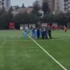 Tekin YALÇINKAYA / ELAZIĞ,(DHA)- ELAZIĞ 1’inci Amatör Küme’den Bölgesel Amatör Lig’e yükselme mücadelesinde Yol Spor ile Kovancılar Spor’un karşı karşıya geldiği maçın uzatma dakikalarında yenilen gol sonrası Kovancılar Spor oyuncuları hakeme saldırdı.Elazığ 1’inci Amatör Lig Play-Off Grubu 4’üncü hafta karşılaşmasında Yol Spor ile Kovancılar Spor karşı karşıya geldi. Mücadele Yol Spor’un 4-1 üstünlüğüyle sürerken, maçın uzatma dakikalarında Kovancılar Spor’un gol yemesinin ardından kaleci hakeme tepki gösterdi. Ardından Kovancılar Spor’da bazı futbolcular ve saha dışından gelen kişiler; hakemler Yunus Emre Atik, İbrahim Balanyan, Taha Doğan ve Koray Sertkaya’ya fiziksel saldırıda bulundu. Hakemler tekme ve yumrukların hedefi olurken, polisin araya girmesiyle saldırı sonlandırıldı. Saha dışına da taşan olaylarda tesislerin soyunma odalarının kapı ve pencerelerine de zarar verildi. Cep telefonu kamerası ile kaydedilen saldırı ile ilgili inceleme başlatıldı.GÖRÜNTÜ DÖKÜMÜ:- Cep telefonu görüntüsü-Hakeme saldırma anı-Polislerin müdahale anı-Genel ve detay görüntüler