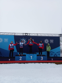 İSTANBUL, (DHA)- ÖZEL Olimpiyatlar Dünya Kış Oyunları alp disiplini dev slalom final yarışlarında mücadele eden Eda Nur Biçer, 1:26.290’lık derecesiyle altın madalyanın sahibi oldu. Aynı kategoride yarışan Beyza Kirenli ise 1:56.010’luk derecesiyle bronz madalya kazandı.Torino'da devam eden Özel Olimpiyatlar Dünya Kış Oyunları’nın 4’üncü gününde, Özel Olimpiyatlar Türkiye sporcuları alp disiplini branşında iki madalya kazanarak büyük bir başarıya imza attı. İtalya’nın Sestriere Vialattea Kayak Merkezi’nde 12 Mart 2025’te gerçekleştirilen dev slalom final yarışlarında, sporcularımız madalya kürsüsünde yerini alarak Türkiye’yi gururlandırdı. Özel Olimpiyatlar Dünya Kış Oyunları alp disiplini dev slalom final yarışlarında mücadele eden Eda Nur Biçer, 1:26.290’lık derecesiyle altın madalyanın sahibi oldu. Aynı kategoride yarışan Beyza Kirenli, 1:56.010’luk derecesiyle bronz madalya kazanırken, Şehriye Naz Koncalıoğlu ise 2:10.220’lik derecesiyle 4'üncü sırada yer aldı. Büyük bir mücadele veren Enver Eren Kebapçıoğlu yarışları 5'inci sırada tamamlarken, Berat Kömbeci ise yarışlar sonunda elendi. Alp disiplini yarışları, 13 Mart'ta Super G slalom yarışı ile sürecek. 14 ve 15 Mart tarihlerinde ise slalom final yarışları gerçekleştirilecek. Öte yandan, kayaklı yürüyüş branşında mücadele eden Sude Cihan ve Batuhan Uludağ, 13 ve 14 Mart’ta madalya için piste çıkacak. (FOTOĞRAFLI)